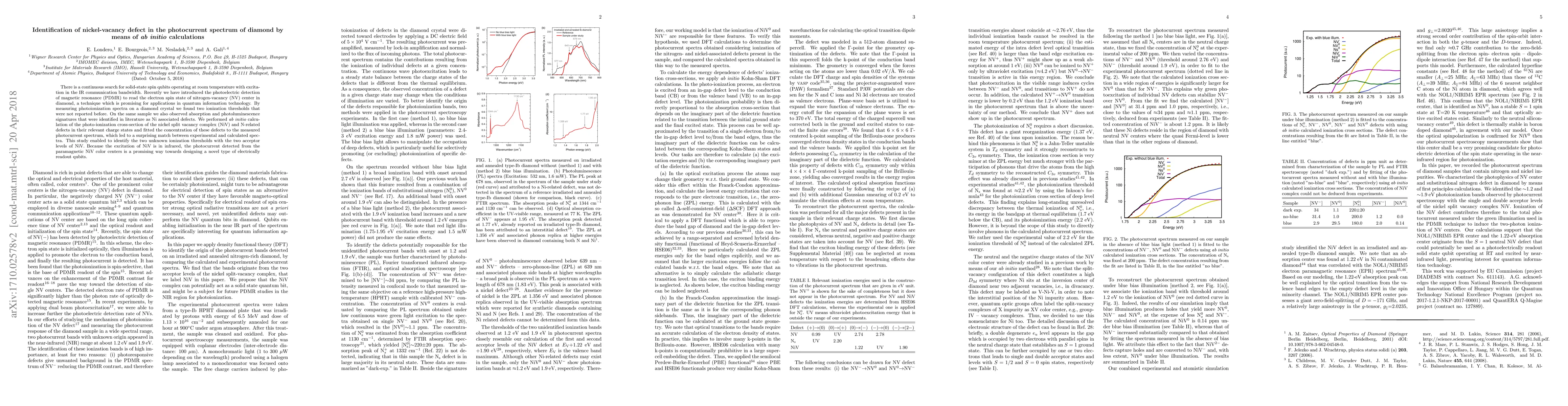 This paper identifies nickel-vacancy defects in diamond using photocurrent spectrum analysis and \emph{ab initio} calculations, revealing two previously unreported ionization thresholds linked to NiV. The study suggests that the infrared excitation of NiV makes it a promising candidate for electrically readout qubits in quantum information technology.