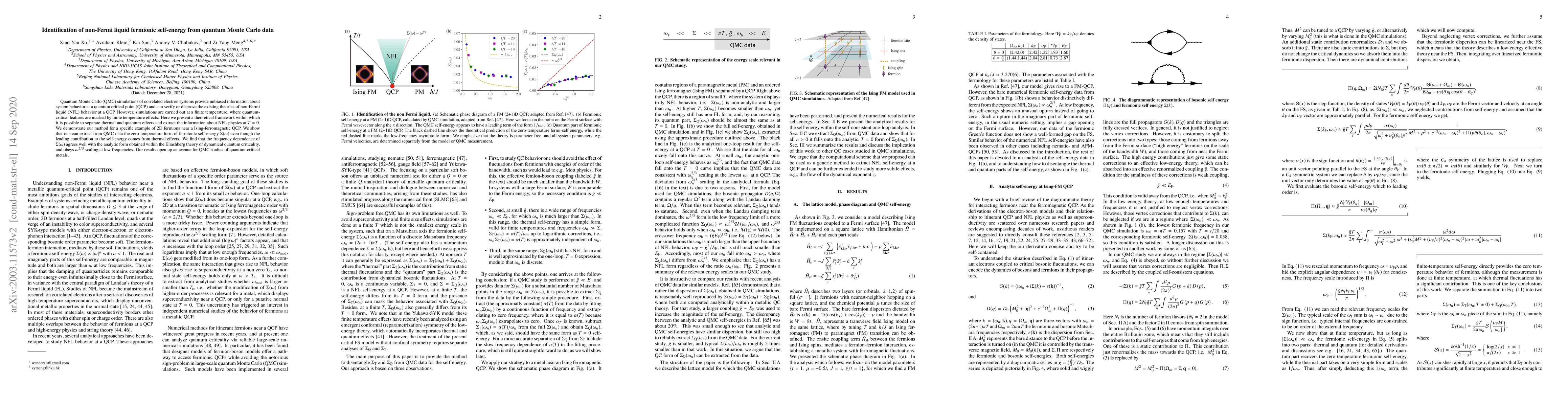 This paper presents a theoretical framework to extract non-Fermi liquid fermionic self-energy from Quantum Monte Carlo data, demonstrating it on 2D fermions near an Ising-ferromagnetic QCP. The method separates thermal and quantum effects, revealing $\omega^{2/3}$ scaling in the self-energy at low frequencies, consistent with Eliashberg theory.