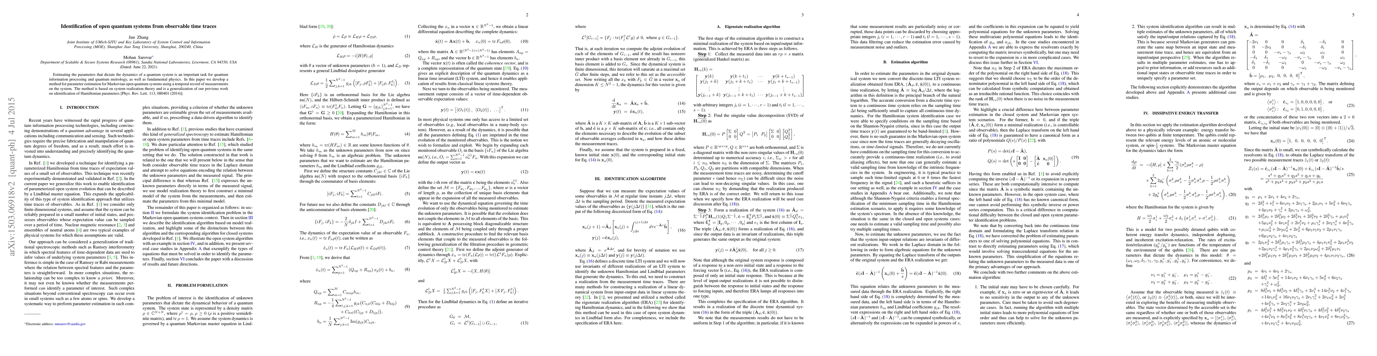 Estimating the parameters that dictate the dynamics of a quantum system is an important task for quantum information processing and quantum metrology, as well as fundamental physics. In this paper we develop a method for parameter estimation for Markovian open quantum systems using a temporal record of measurements on the system. The method is based on system realization theory and is a generalization of our previous work on identification of Hamiltonian parameters [Phys. Rev. Lett. 113, 080401 (2014)].