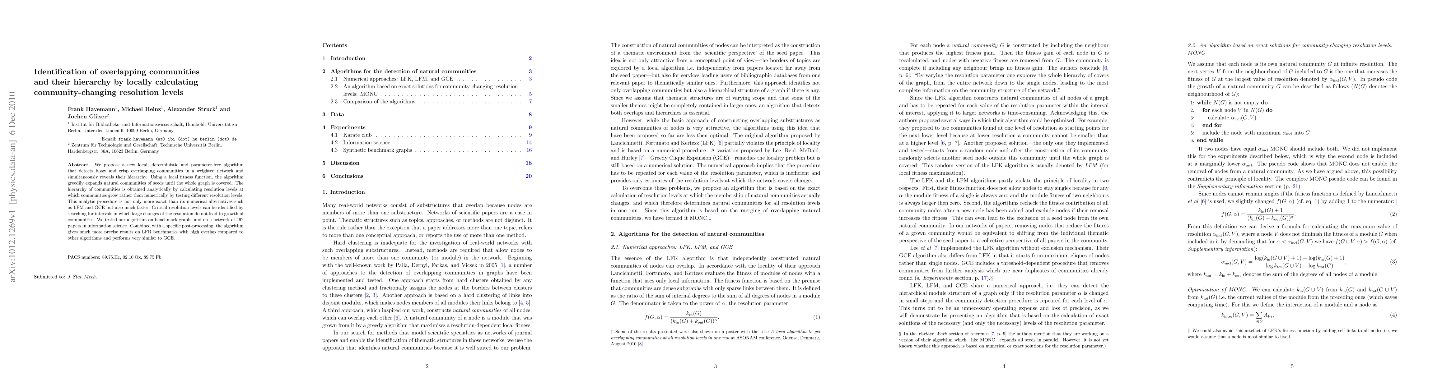 This paper introduces a novel algorithm to detect overlapping communities in weighted networks, revealing their hierarchy without parameters. The method uses a local fitness function to expand communities from seeds, determining critical resolution levels analytically for faster and more precise results compared to numerical methods.