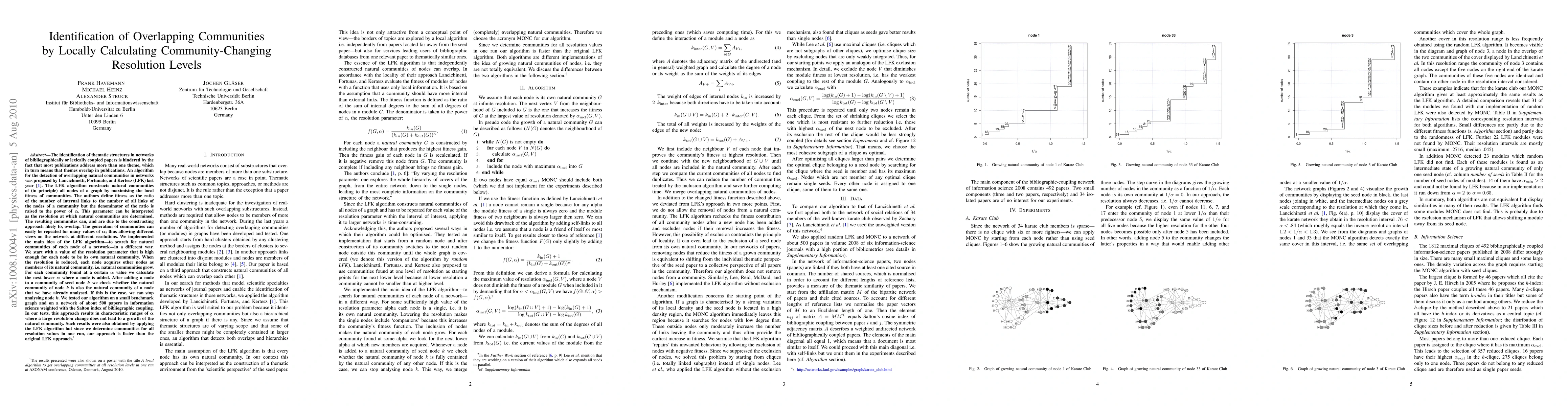 This paper proposes an algorithm for detecting overlapping communities in networks by locally calculating community-changing resolution levels, which is faster and reveals hierarchical structures more easily than the LFK algorithm, as demonstrated on benchmark graphs and a network of information science papers.