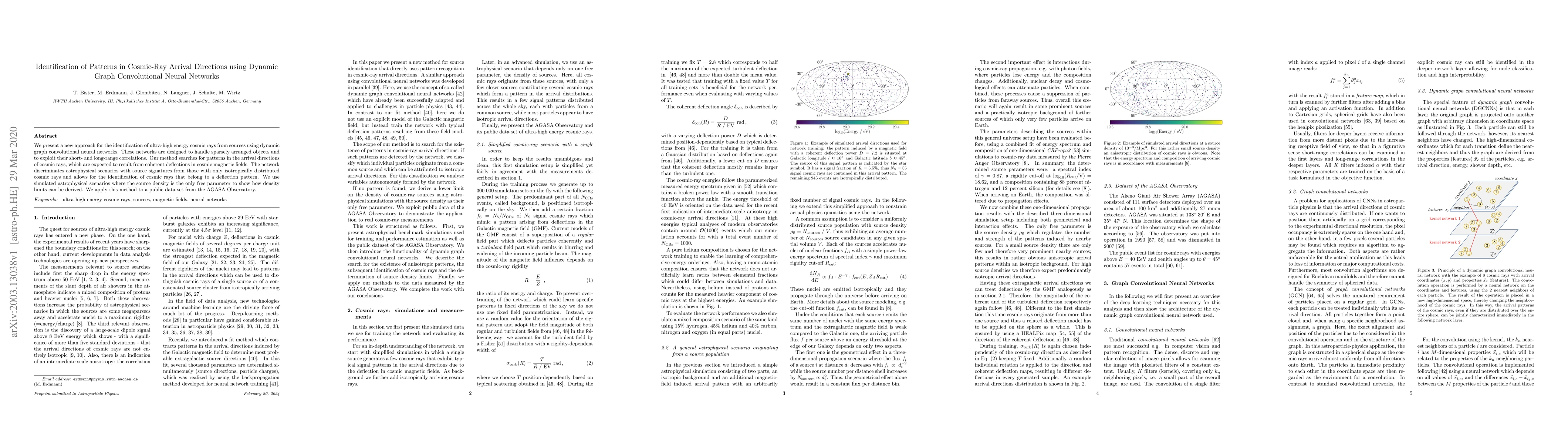 We present a new approach for the identification of ultra-high energy cosmic rays from sources using dynamic graph convolutional neural networks. These networks are designed to handle sparsely arranged objects and to exploit their short- and long-range correlations. Our method searches for patterns in the arrival directions of cosmic rays, which are expected to result from coherent deflections in cosmic magnetic fields. The network discriminates astrophysical scenarios with source signatures from those with only isotropically distributed cosmic rays and allows for the identification of cosmic rays that belong to a deflection pattern. We use simulated astrophysical scenarios where the source density is the only free parameter to show how density limits can be derived. We apply this method to a public data set from the AGASA Observatory.