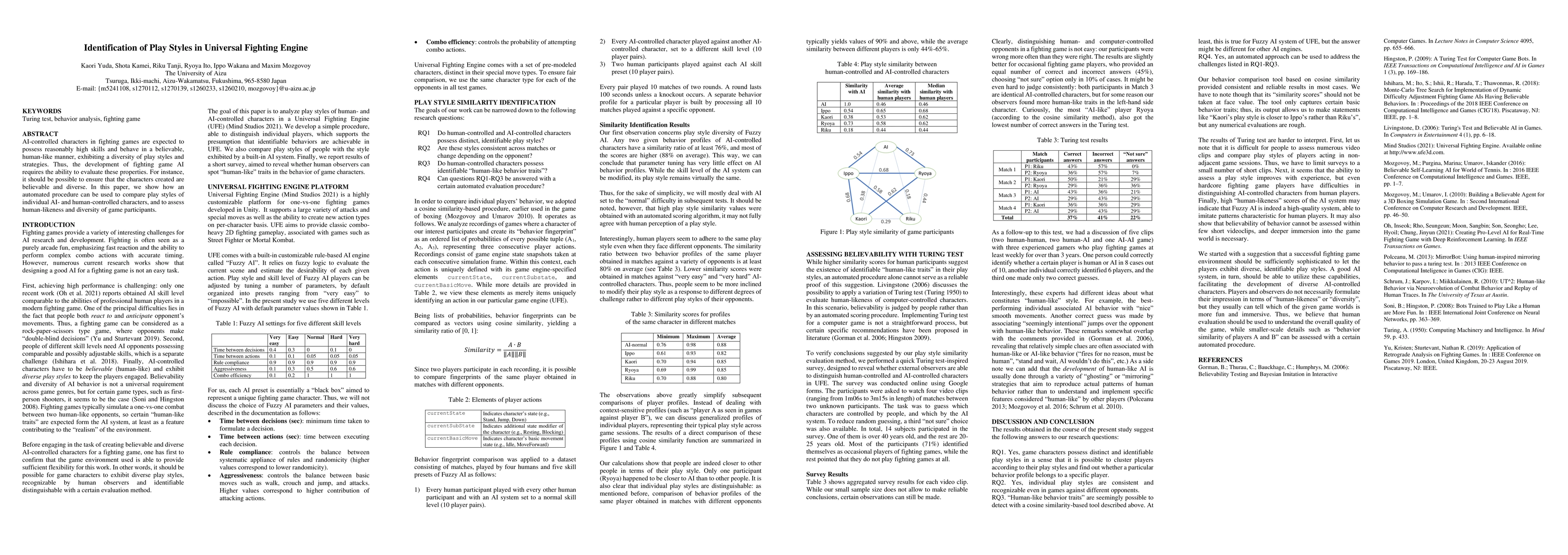 This paper presents an automated method for evaluating and comparing play styles of AI-controlled characters against human-controlled ones in fighting games, aiming to assess the believability and diversity of AI behaviors. The procedure helps ensure that AI-driven characters exhibit a range of human-like strategies and skills.
