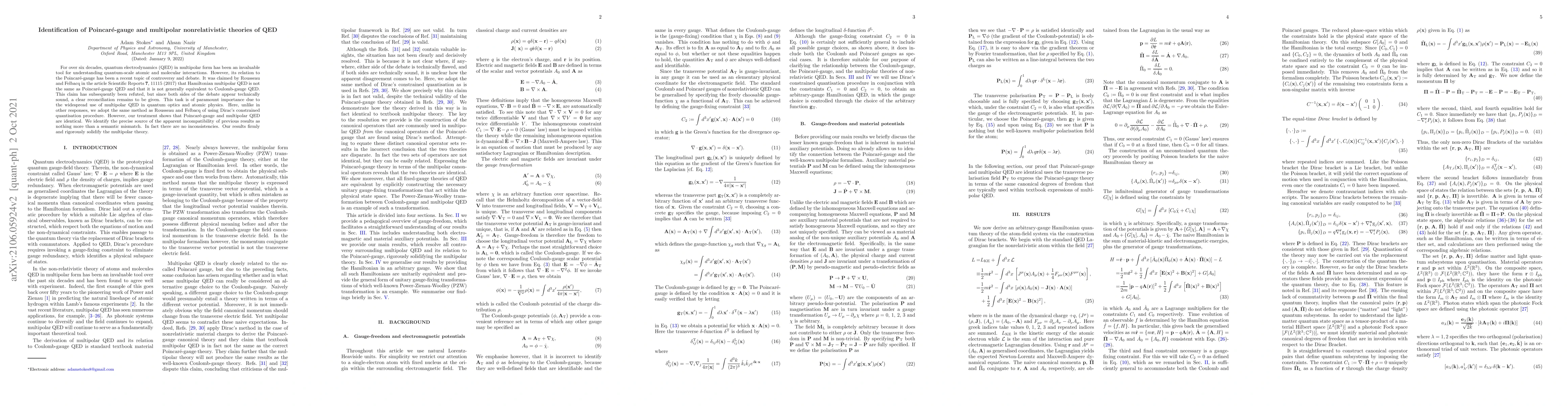 This paper resolves the controversy over the equivalence of Poincare-gauge and multipolar QED by using Dirac's constrained quantization method, demonstrating that both theories are identical, with previous discrepancies arising from semantic differences rather than technical inconsistencies.