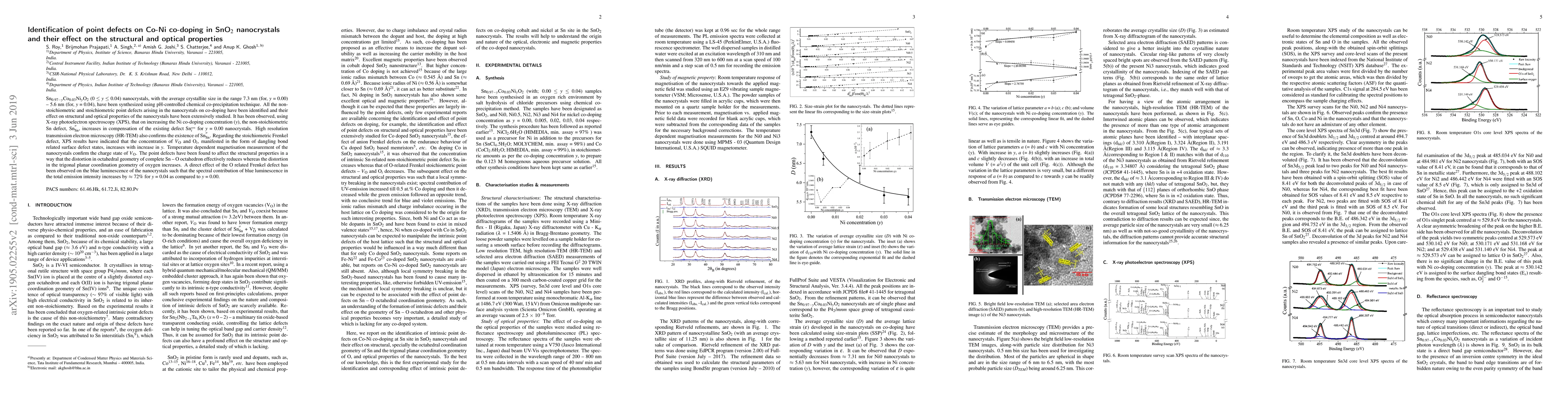 This study investigates SnO$_{2}$ nanocrystals co-doped with Co and Ni, revealing the impact of point defects on structural and optical properties. The research identifies non-stoichiometric Sn defects and Frenkel defects, showing that increased Ni doping leads to enhanced disorder and a red-shifted optical band gap, followed by a blue shift.