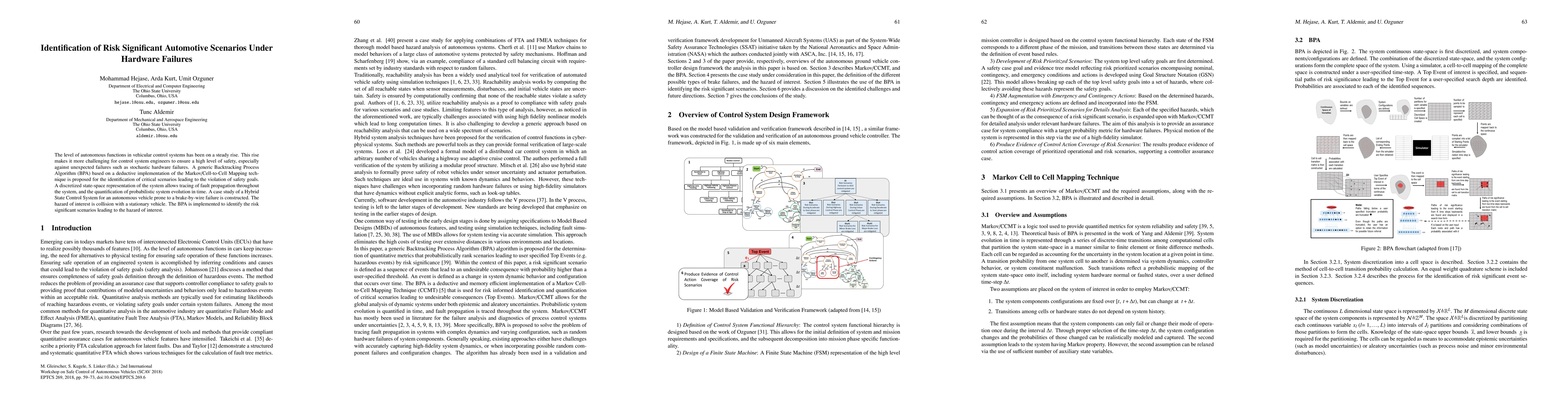 The level of autonomous functions in vehicular control systems has been on a steady rise. This rise makes it more challenging for control system engineers to ensure a high level of safety, especially against unexpected failures such as stochastic hardware failures. A generic Backtracking Process Algorithm (BPA) based on a deductive implementation of the Markov/Cell-to-Cell Mapping technique is proposed for the identification of critical scenarios leading to the violation of safety goals. A discretized state-space representation of the system allows tracing of fault propagation throughout the system, and the quantification of probabilistic system evolution in time. A case study of a Hybrid State Control System for an autonomous vehicle prone to a brake-by-wire failure is constructed. The hazard of interest is collision with a stationary vehicle. The BPA is implemented to identify the risk significant scenarios leading to the hazard of interest.