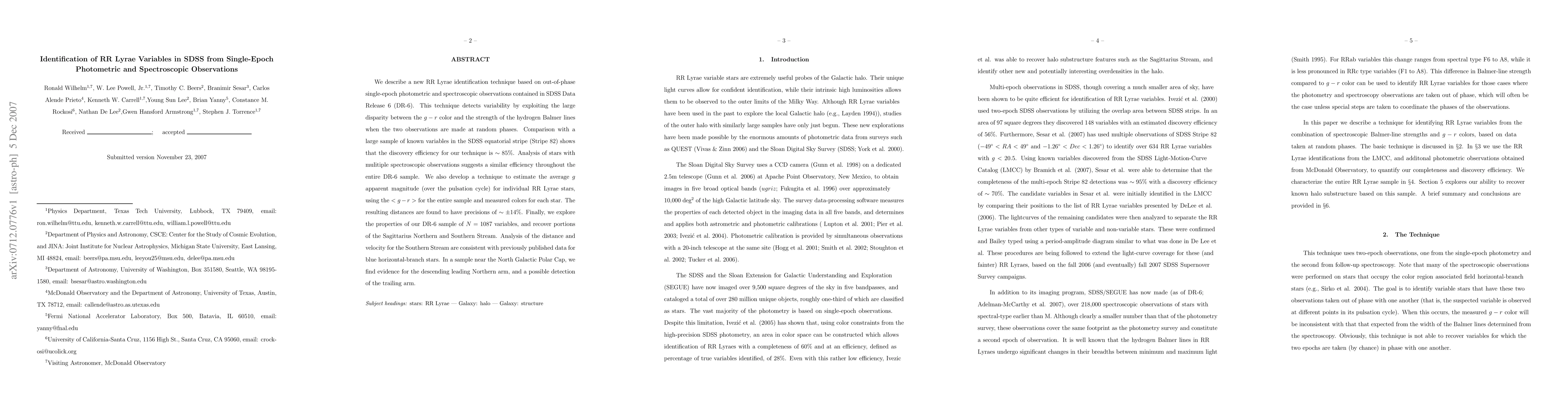 This paper introduces a new method for identifying RR Lyrae variables using single-epoch photometric and spectroscopic data from SDSS DR-6, achieving an 85% discovery efficiency. The technique estimates RR Lyrae distances with ~14% precision and analyzes the Sagittarius streams and the North Galactic Polar Cap.