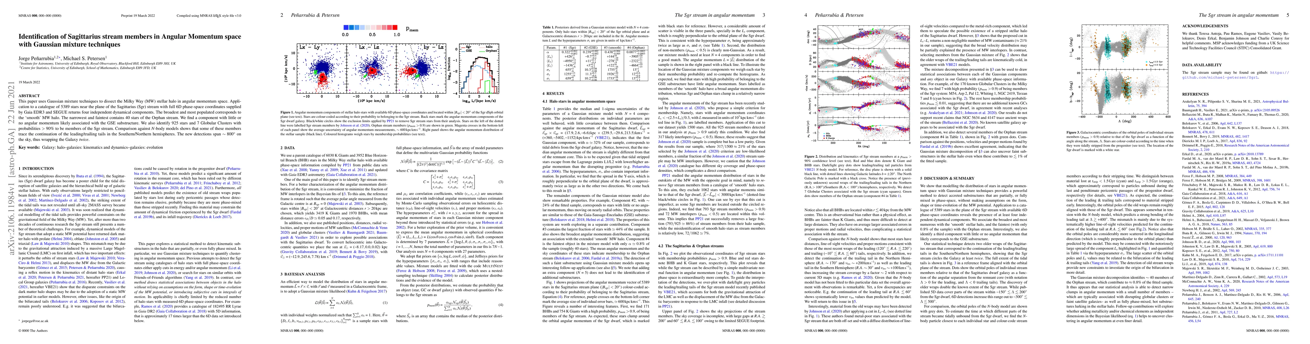 This paper identifies Sagittarius stream members using Gaussian mixture techniques in angular momentum space, revealing four dynamical components from a catalogue of stars near the Sagittarius stream. It identifies 925 stars and 7 globular clusters as probable Sgr stream members, with some tracing the stream's leading and trailing tails.