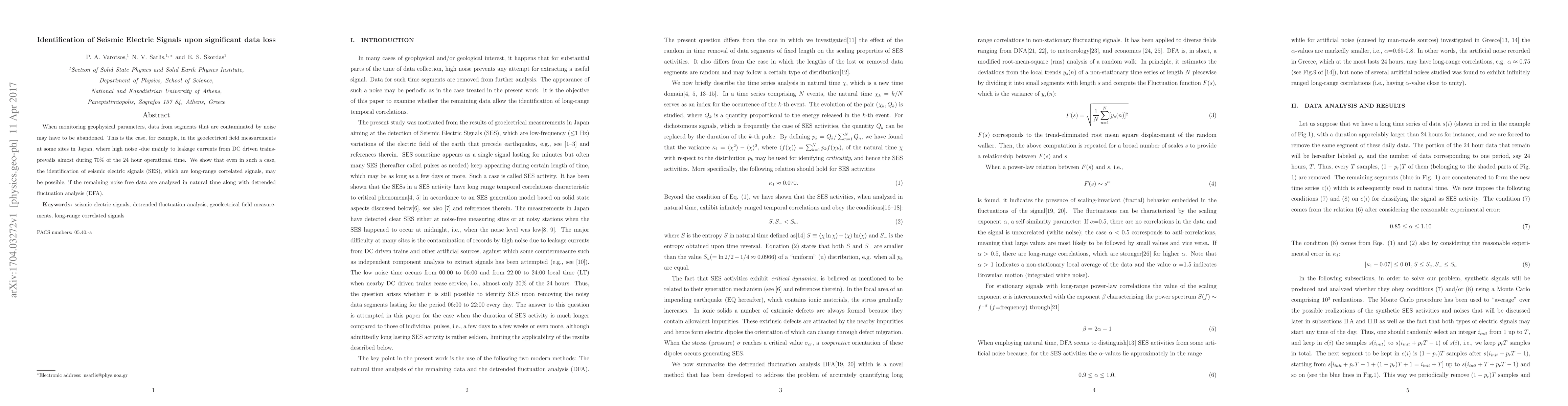 Researchers found that even in noisy data, seismic electric signals can be identified using detrended fluctuation analysis (DFA) when analyzing remaining noise-free data over natural time periods.