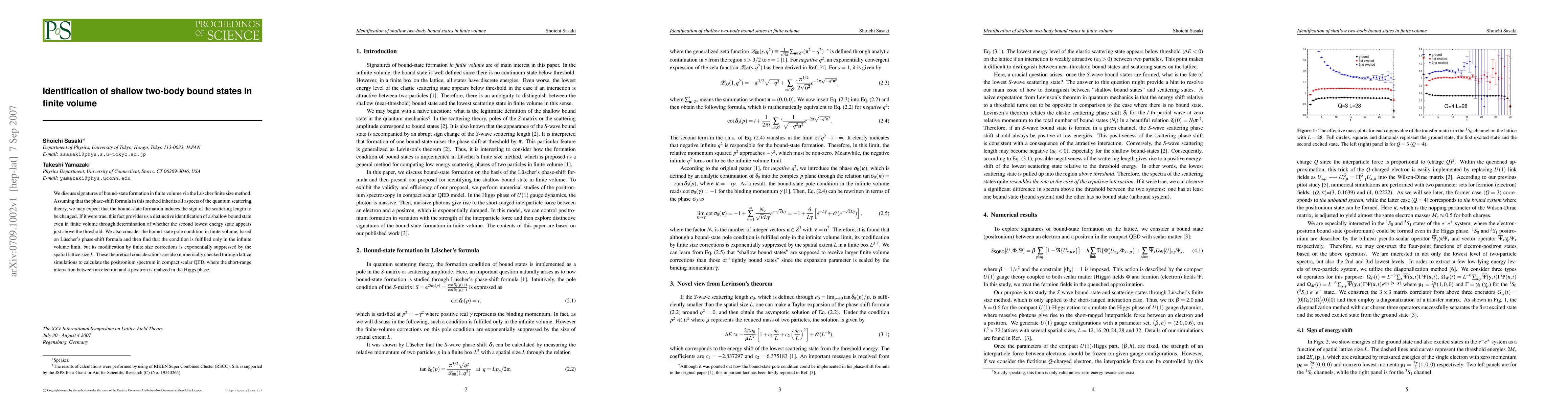 This paper explores the identification of shallow two-body bound states using the Luscher finite size method, demonstrating that the sign of the scattering length changes with bound-state formation. Numerical simulations in lattice compact scalar QED confirm these theoretical predictions, showing that finite volume effects are exponentially suppressed.