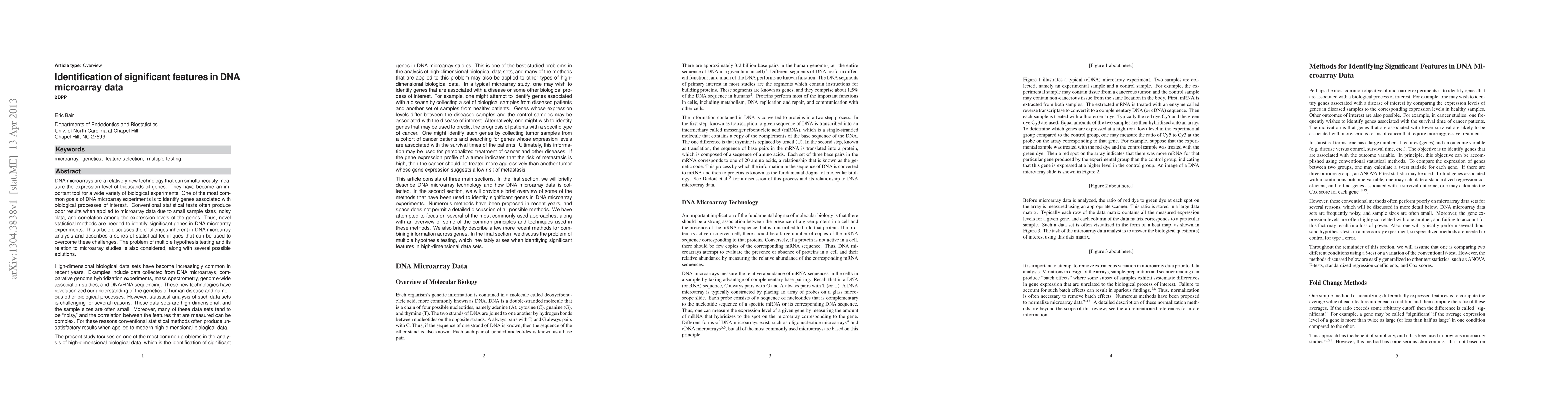 This paper addresses the challenges of analyzing DNA microarray data, focusing on identifying significant genes amidst small sample sizes and noisy data. It proposes advanced statistical techniques to overcome these issues and discusses the problem of multiple hypothesis testing in the context of microarray experiments, along with potential solutions.