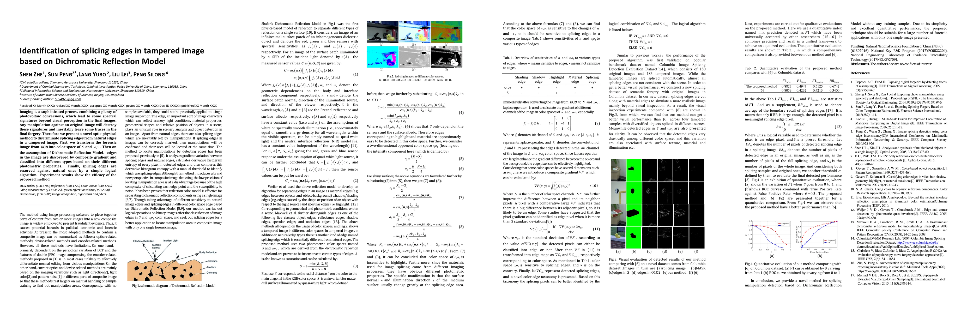This paper proposes a novel method to identify splicing edges in tampered images using the Dichromatic Reflection Model, transforming the image from RGB to S and o1o2 color space. It classifies image edges based on their photometric properties and distinguishes splicing edges from natural ones using a logical algorithm, demonstrating effective results.