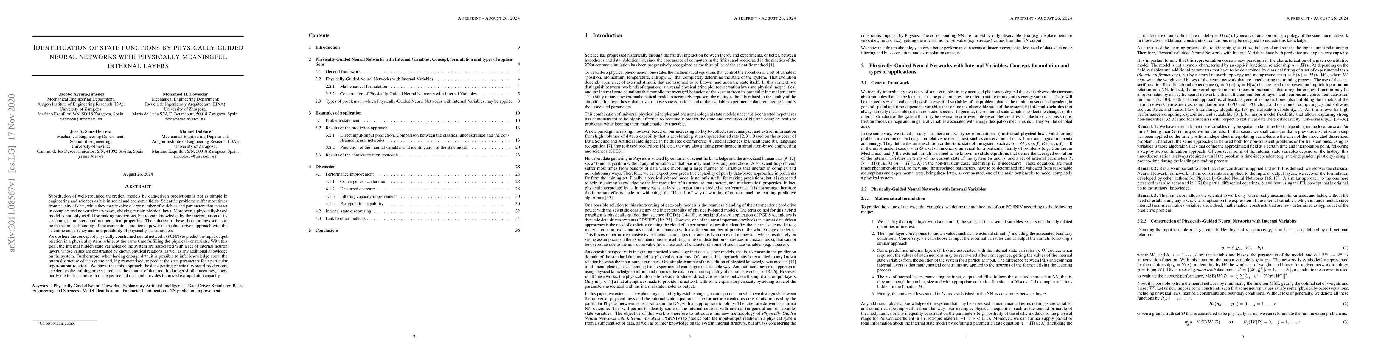 Substitution of well-grounded theoretical models by data-driven predictions is not as simple in engineering and sciences as it is in social and economic fields. Scientific problems suffer most times from paucity of data, while they may involve a large number of variables and parameters that interact in complex and non-stationary ways, obeying certain physical laws. Moreover, a physically-based model is not only useful for making predictions, but to gain knowledge by the interpretation of its structure, parameters, and mathematical properties. The solution to these shortcomings seems to be the seamless blending of the tremendous predictive power of the data-driven approach with the scientific consistency and interpretability of physically-based models. We use here the concept of physically-constrained neural networks (PCNN) to predict the input-output relation in a physical system, while, at the same time fulfilling the physical constraints. With this goal, the internal hidden state variables of the system are associated with a set of internal neuron layers, whose values are constrained by known physical relations, as well as any additional knowledge on the system. Furthermore, when having enough data, it is possible to infer knowledge about the internal structure of the system and, if parameterized, to predict the state parameters for a particular input-output relation. We show that this approach, besides getting physically-based predictions, accelerates the training process, reduces the amount of data required to get similar accuracy, filters partly the intrinsic noise in the experimental data and provides improved extrapolation capacity.