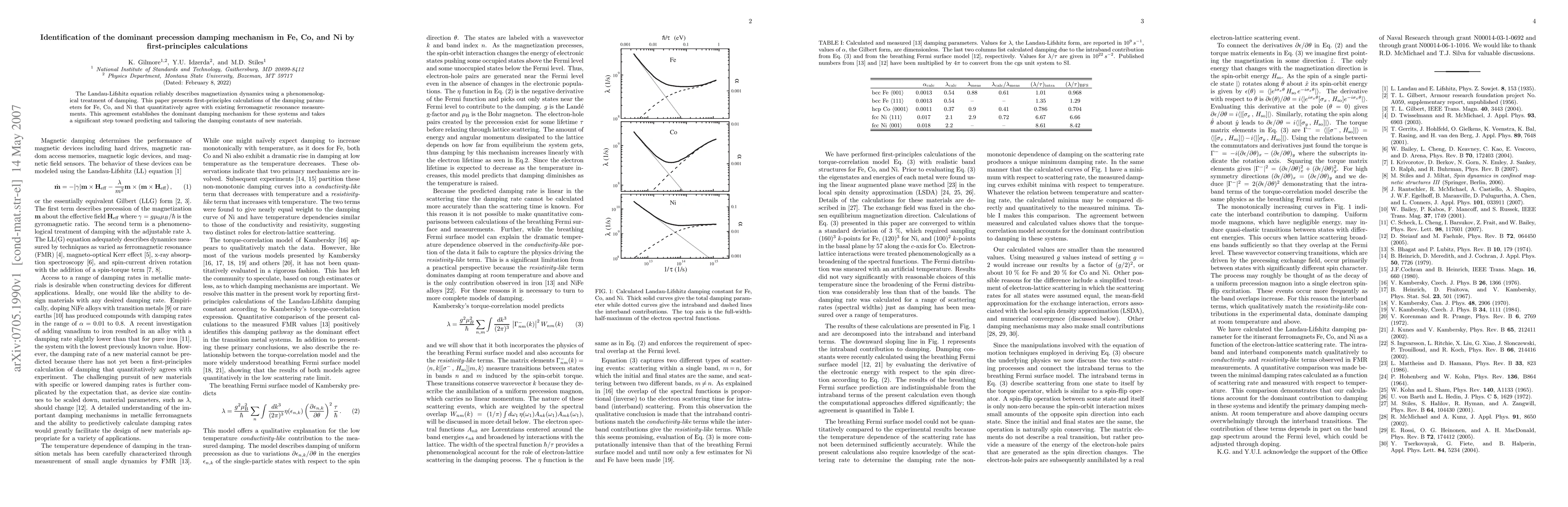 This research identifies the main precession damping mechanism in Fe, Co, and Ni using first-principles calculations, confirming the agreement with ferromagnetic resonance measurements and establishing a method to predict damping constants for new materials.