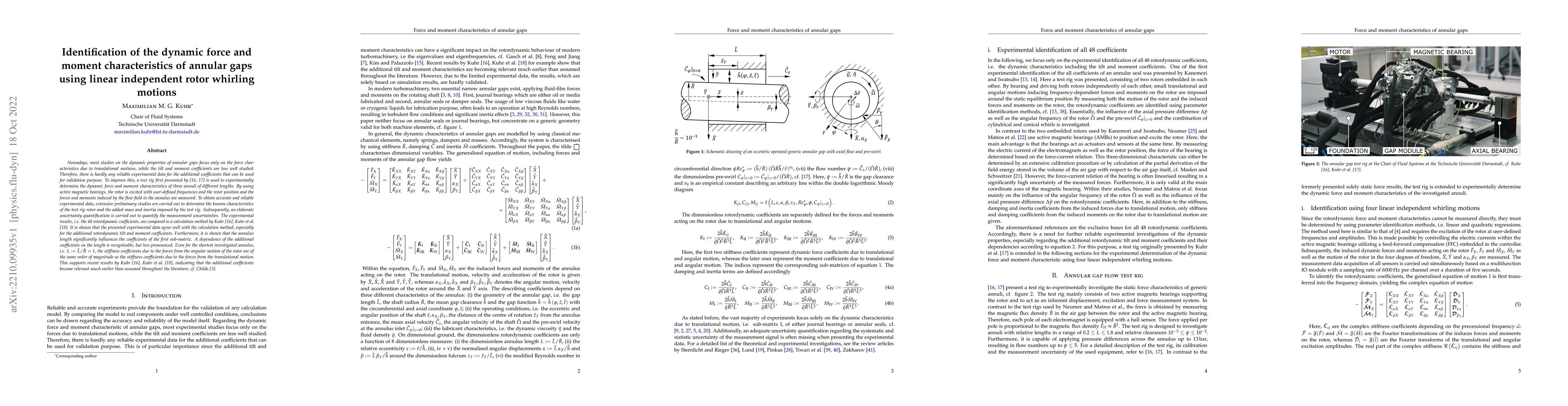 This paper experimentally determines the dynamic force and moment characteristics of annular gaps using a test rig with active magnetic bearings. The study reveals that the additional rotordynamic tilt and moment coefficients are significant and influenced by annulus length, challenging previous assumptions.