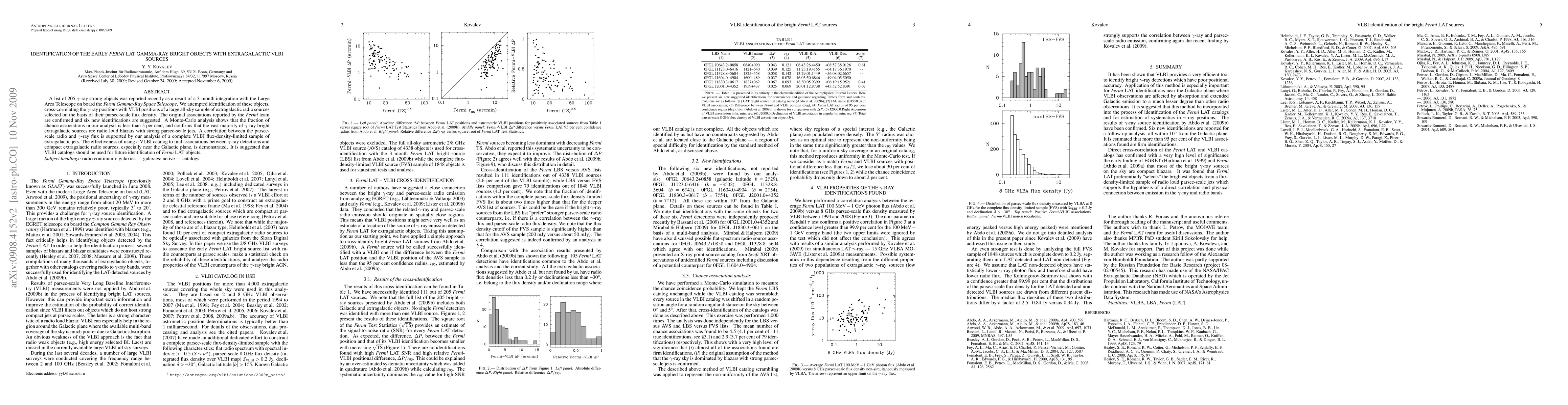 A list of 205 gamma-ray strong objects was reported recently as a result of a 3-month integration with the Large Area Telescope on board the Fermi Gamma-Ray Space Telescope. We attempted identification of these objects, cross-correlating the gamma-ray positions with VLBI positions of a large all-sky sample of extragalactic radio sources selected on the basis of their parsec-scale flux density. The original associations reported by the Fermi team are confirmed and six new identifications are suggested. A Monte-Carlo analysis shows that the fraction of chance associations in our analysis is less than 5 per cent, and confirms that the vast majority of gamma-ray bright extragalactic sources are radio loud blazars with strong parsec-scale jets. A correlation between the parsec-scale radio and gamma-ray flux is supported by our analysis of a complete VLBI flux-density-limited sample of extragalactic jets. The effectiveness of using a VLBI catalog to find associations between gamma-ray detections and compact extragalactic radio sources, especially near the Galactic plane, is demonstrated. It is suggested that VLBI catalogs should be used for future identification of Fermi LAT objects.