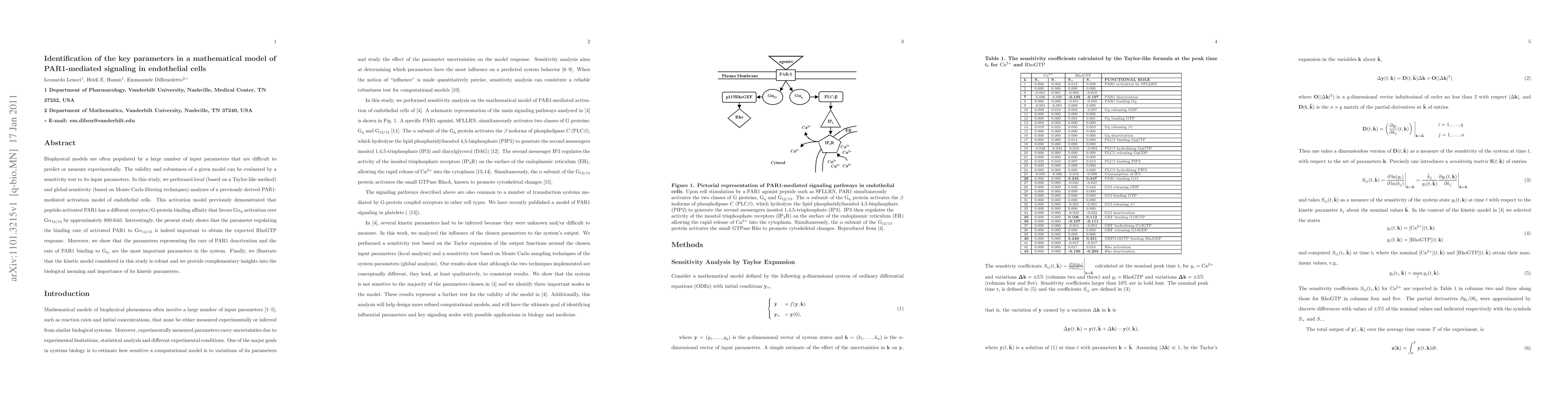 This study conducts sensitivity analyses on a PAR1-mediated activation model of endothelial cells, identifying key parameters through local and global methods. It highlights the importance of PAR1 deactivation rate, PAR1 binding rate to G_q, and the binding rate to Galpha_12/13 in generating the expected RhoGTP response, reinforcing the model's robustness and biological relevance.