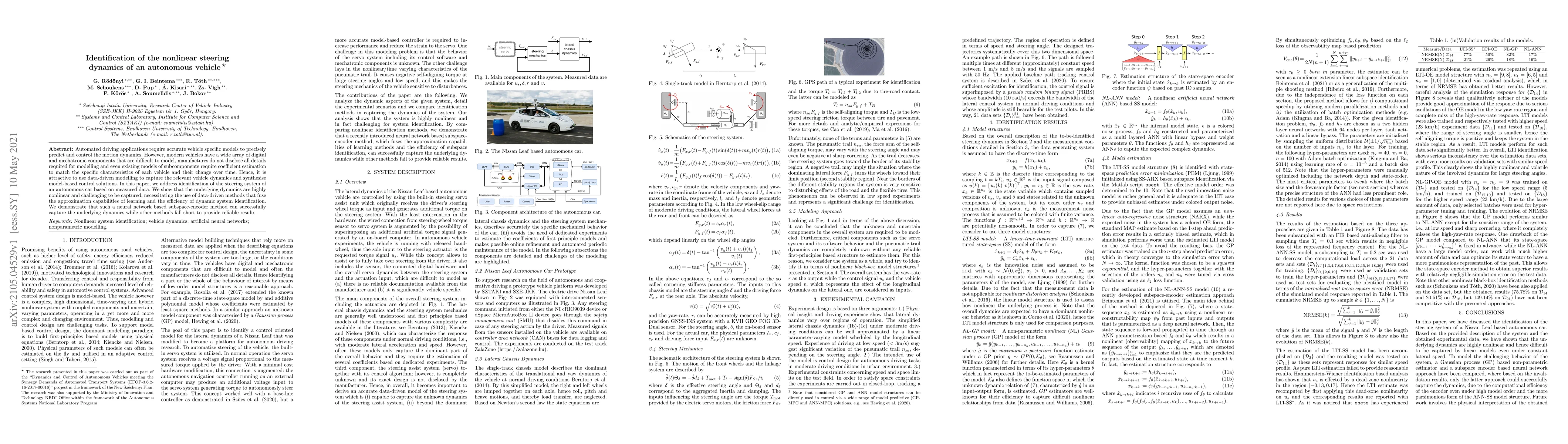 This paper identifies the nonlinear steering dynamics of an autonomous vehicle using data-driven methods, specifically a neural network-based subspace-encoder approach, to accurately model the complex interactions of vehicle components. Traditional modelling approaches struggle due to the lack of detailed information, but the data-driven method effectively captures the underlying nonlinear dynamics.