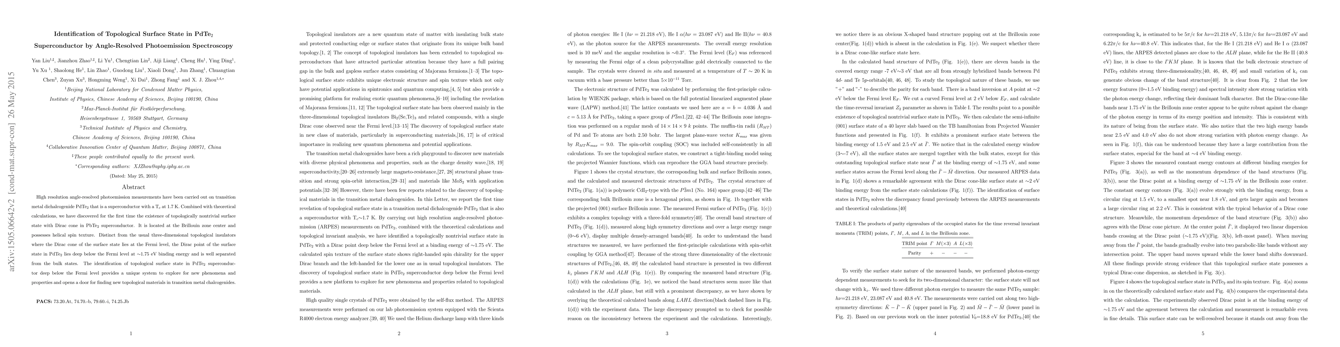 High-resolution angle-resolved photoemission spectroscopy identified a topological surface state with a Dirac cone in the PdTe2 superconductor, located deep below the Fermi level. This unique feature distinguishes it from typical three-dimensional topological insulators and opens new avenues for exploring novel material properties.