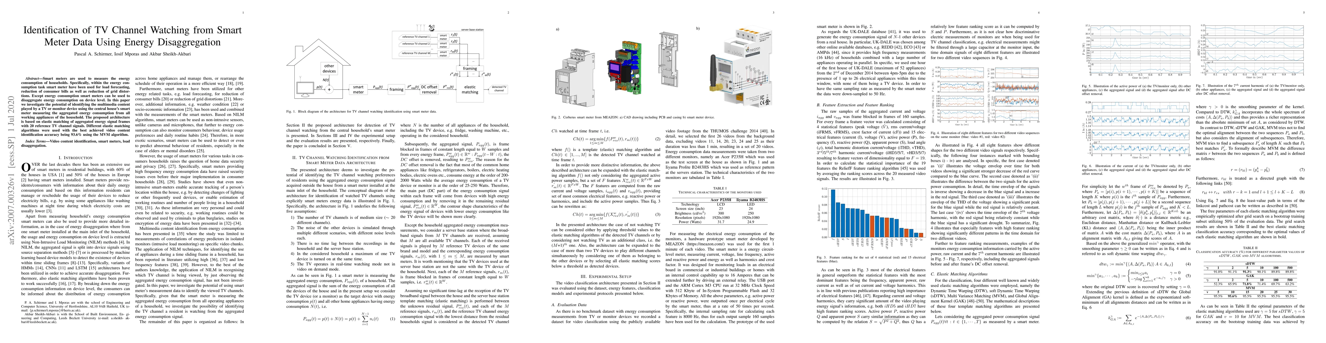 This paper explores using smart meter data to identify TV channel watching by matching aggregated energy consumption signals with reference TV channel energy profiles. The best method, MVM algorithm, achieved 93.6% accuracy in identifying the multimedia content.