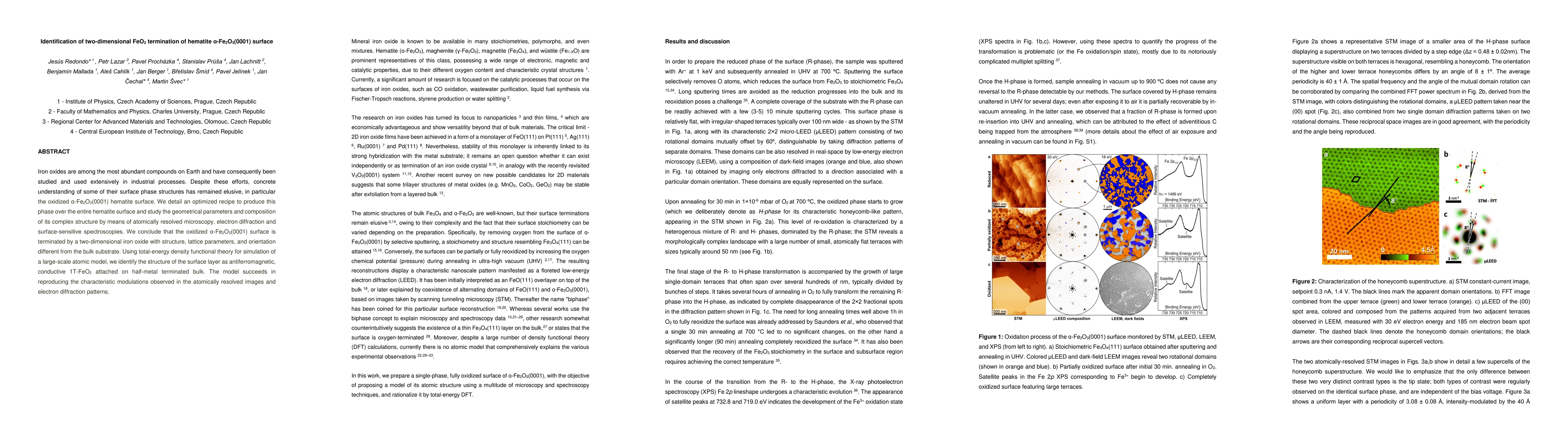 Iron oxides are among the most abundant compounds on Earth and have consequently been studied and used extensively in industrial processes. Despite these efforts, concrete understanding of some of their surface phase structures has remained elusive, in particular the oxidized ${\alpha}-Fe_2O_3(0001)$ hematite surface. We detail an optimized recipe to produce this phase over the entire hematite surface and study the geometrical parameters and composition of its complex structure by means of atomically resolved microscopy, electron diffraction and surface-sensitive spectroscopies. We conclude that the oxidized ${\alpha}-Fe_2O_3(0001)$ surface is terminated by a two-dimensional iron oxide with structure, lattice parameters, and orientation different from the bulk substrate. Using total-energy density functional theory for simulation of a large-scale atomic model, we identify the structure of the surface layer as antiferromagnetic, conductive $1T-FeO_2$ attached on half-metal terminated bulk. The model succeeds in reproducing the characteristic modulations observed in the atomically resolved images and electron diffraction patterns.