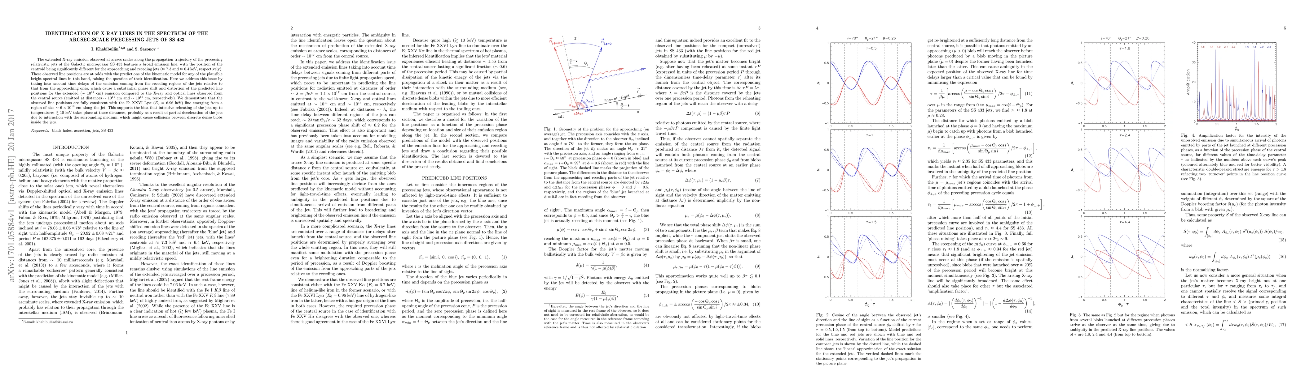 Researchers identified a strong X-ray line in the spectrum of SS 433's precessing jets, contradicting predictions, but explaining it with time delays caused by jet interaction with surrounding medium. The line is consistent with Fe XXVI Ly$eta$ emission from a region of dense blobs within the jets.