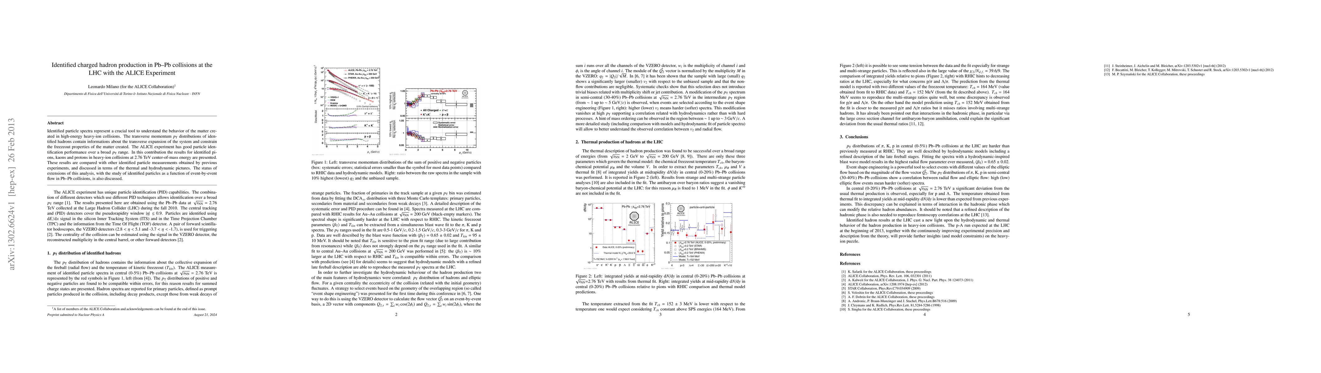The ALICE experiment at the LHC measures transverse momentum distributions of identified pions, kaons, and protons in Pb-Pb collisions, providing insights into the system's expansion and freezeout properties. These results are compared with previous experiments and analyzed within thermal and hydrodynamic frameworks, with ongoing studies exploring event-by-event flow effects.