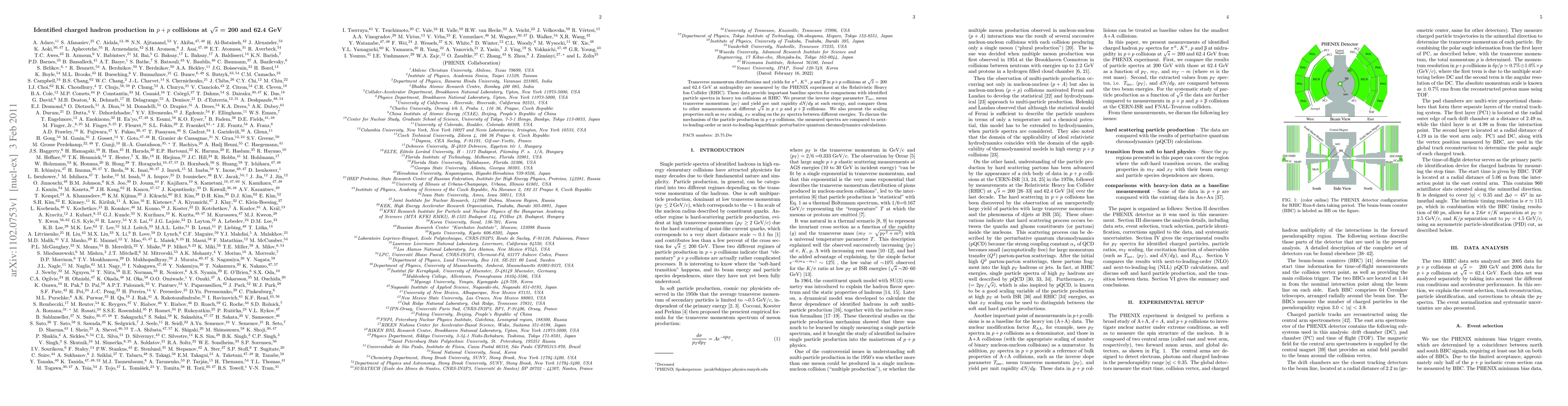 The PHENIX experiment at RHIC measures transverse momentum distributions and yields for charged hadrons in $p+p$ collisions at $\sqrt{s}=200$ and 62.4 GeV, providing baseline spectra for heavy ion collision comparisons. The study compares these spectra to theoretical calculations and other measurements to discuss particle production mechanisms.