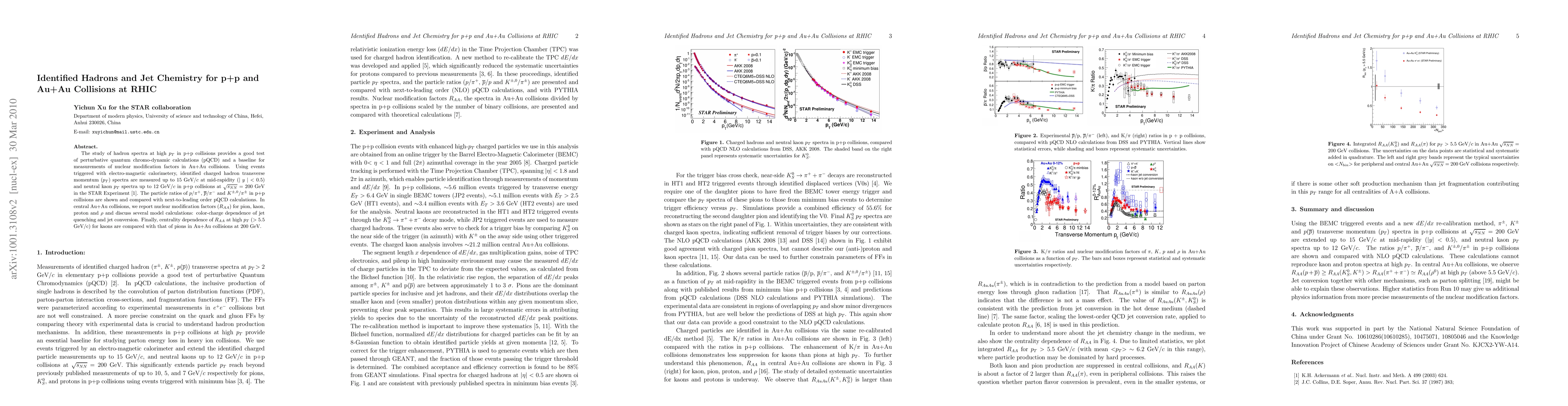 This study measures identified hadron spectra in p+p and Au+Au collisions at RHIC to test perturbative QCD calculations and establish baselines for nuclear modification factors in heavy-ion collisions. It compares particle ratios and spectra with theoretical predictions and discusses jet quenching and conversion models in the context of nuclear modification factors in Au+Au collisions.