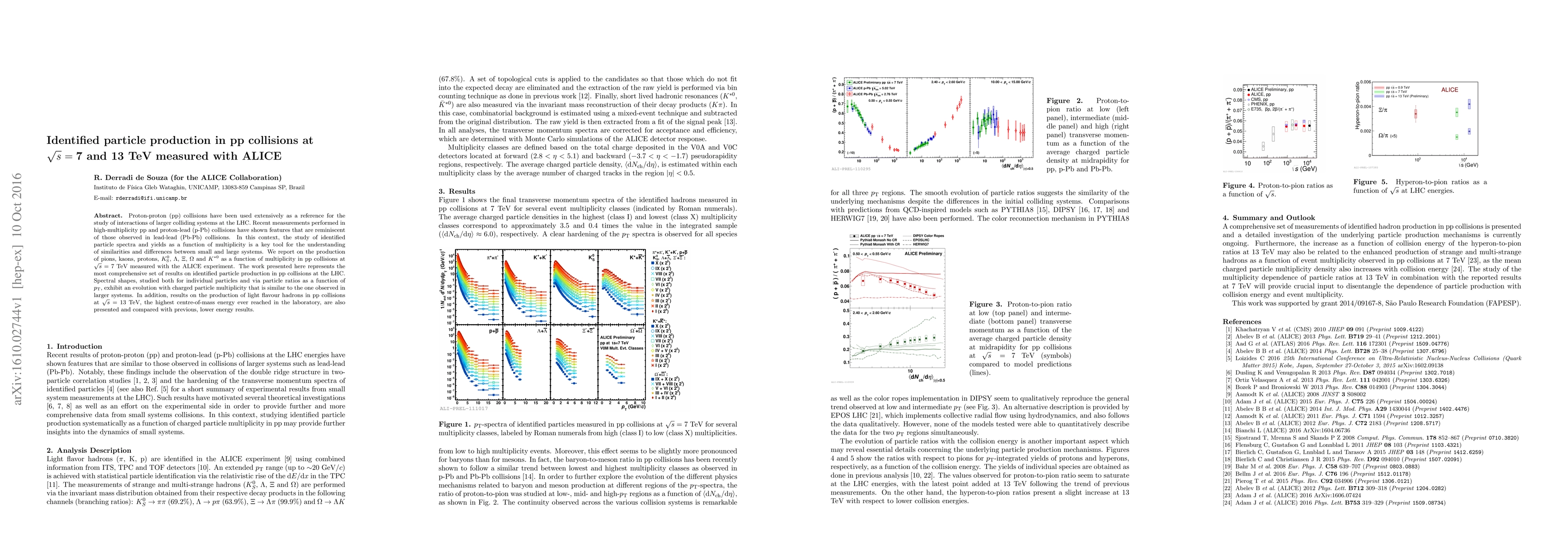 This paper reports on the production of various identified particles in proton-proton collisions at 7 and 13 TeV, measured with the ALICE experiment, revealing similarities in spectral shapes and particle ratios between small and large colliding systems. The study provides a comprehensive dataset on identified particle production in pp collisions at the LHC, highlighting an evolution with multiplicity akin to that observed in larger systems.