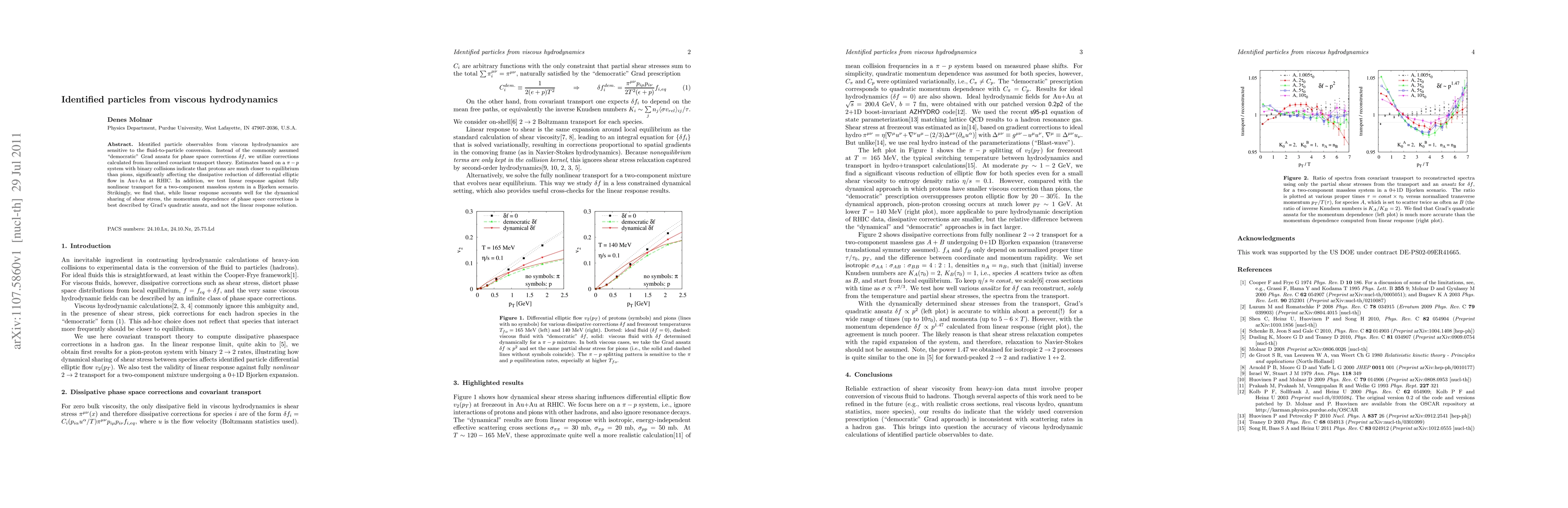 The paper challenges the traditional 'democratic' Grad ansatz, using covariant transport theory to study identified particle observables in viscous hydrodynamics. Results show protons are closer to equilibrium than pions, impacting elliptic flow reduction in Au+Au collisions at RHIC. Linear response accurately describes shear stress sharing, but momentum-dependent phase space corrections are better explained by Grad's quadratic ansatz.