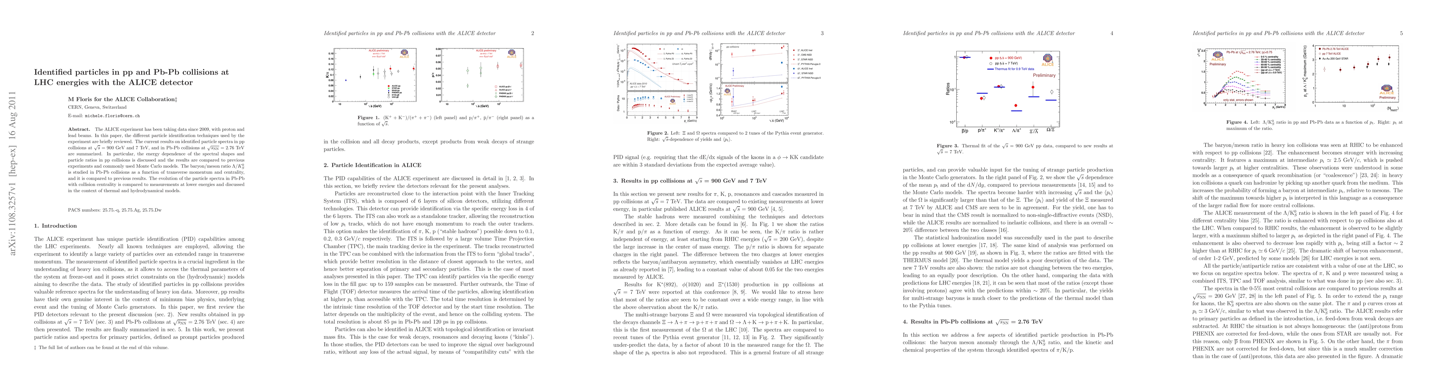 This paper reviews particle identification techniques used in the ALICE detector and summarizes identified particle spectra from pp and Pb-Pb collisions at LHC energies. It discusses the energy dependence of particle spectra in pp collisions and compares results to previous experiments and models, while also analyzing the baryon/meson ratio in Pb-Pb collisions and its evolution with centrality.