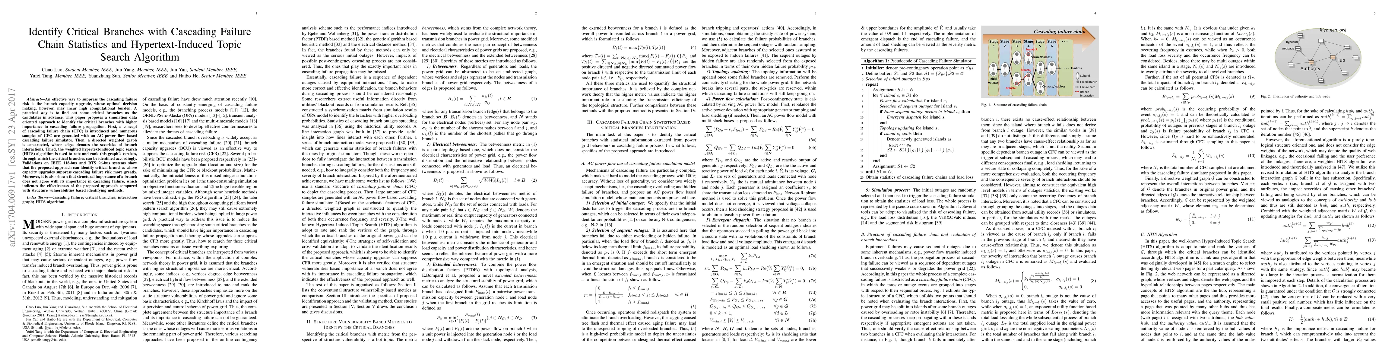 An effective way to suppress the cascading failure risk is the branch capacity upgrade, whose optimal decision making, however, may incur high computational burden. A practical way is to find out some critical branches as the candidates in advance. This paper proposes a simulation data oriented approach to identify the critical branches with higher importance in cascading failure propagation. First, a concept of cascading failure chain (CFC) is introduced and numerous samples of CFC are generated with an AC power flow based cascading failure simulator. Then, a directed weighted graph is constructed, whose edges denotes the severities of branch interactions. Third, the weighted hypertext-induced topic search (HITS) algorithm is used to rate and rank this graph's vertices,through which the critical branches can be identified accordingly. Validations on IEEE 118bus and RTS96 systems show that the proposed approach can identify critical branches whose capacity upgrades suppress cascading failure risk more greatly. Moreover, it is also shown that structural importance of a branch does not agree with its importance in cascading failure, which indicates the effectiveness of the proposed approach compared with structure vulnerabilities based identifying methods.