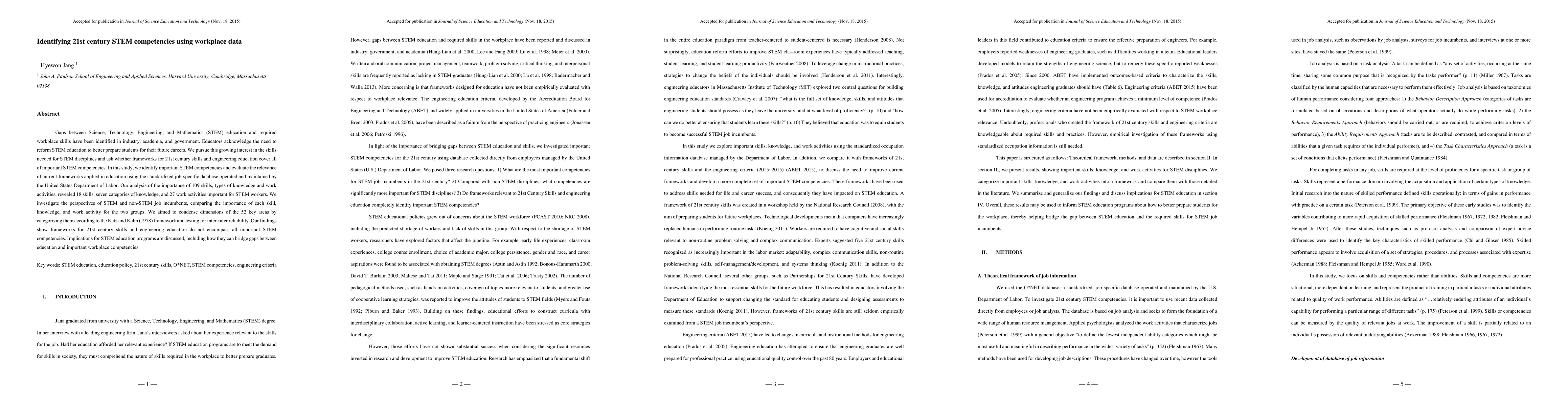 The paper presents a detailed categorization of important STEM competencies using a Katz and Kahn (1978) framework, bridging the gap between educational curricula and labor market demands.