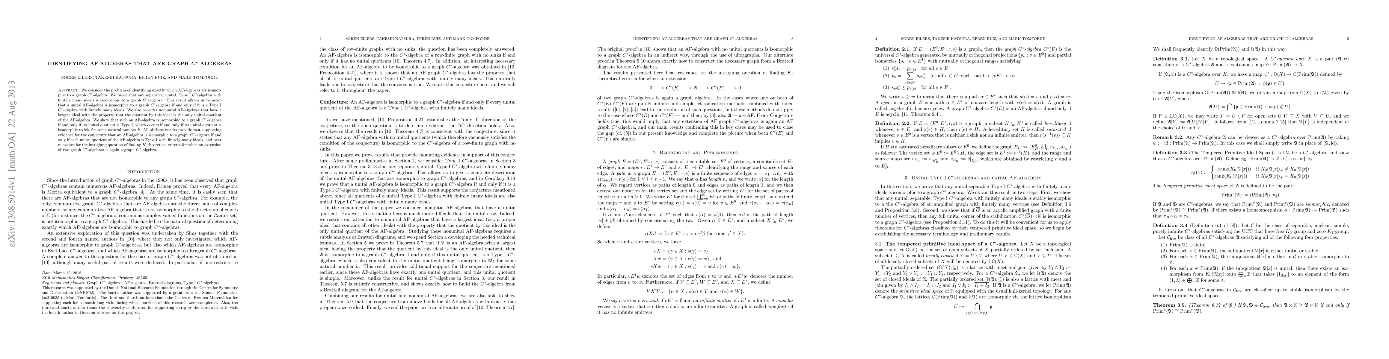 The paper identifies separable, unital Type I AF-algebras with finitely many ideals as those isomorphic to graph C*-algebras. It further extends this to nonunital AF-algebras, proving that they are isomorphic to graph C*-algebras if their largest ideal's quotient is Type I, supporting the conjecture that AF-algebras correspond to graph C*-algebras if each unital quotient is Type I with finitely many ideals.