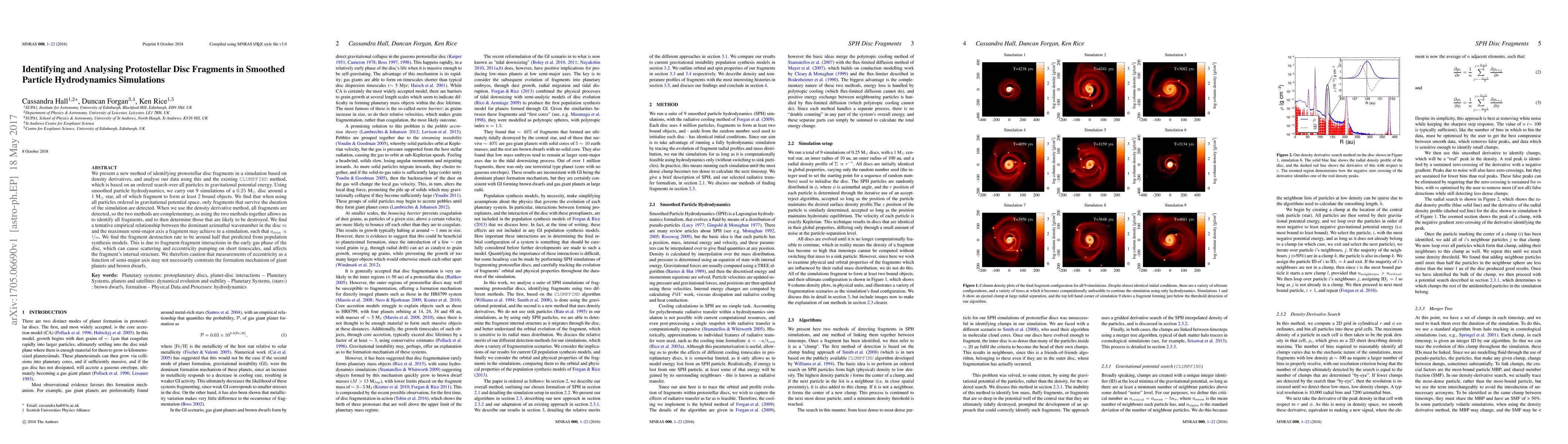 This paper introduces a new method for identifying protostellar disc fragments using density derivatives, comparing it to the existing CLUMPFIND method. Both methods complement each other in detecting all fragments, revealing a tentative empirical relationship between the disc's azimuthal wavenumber and fragment size, and suggesting that fragment destruction rates are lower than predicted due to early gas phase interactions.