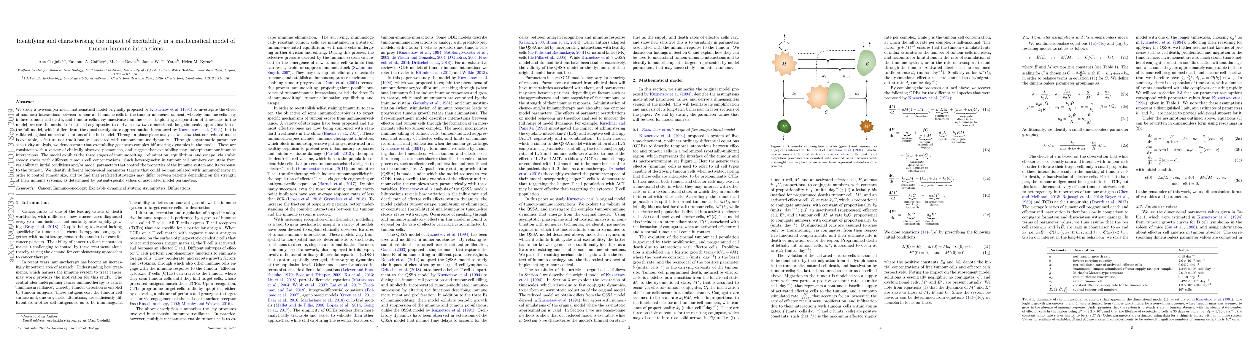 This paper develops a new two-dimensional approximation of a five-compartment model to study tumour-immune interactions, revealing excitability and complex bifurcation dynamics not previously associated with such models. The findings suggest excitability may underpin tumour-immune dynamics and identify potential immunotherapy strategies tailored to patient-specific immune system strengths.