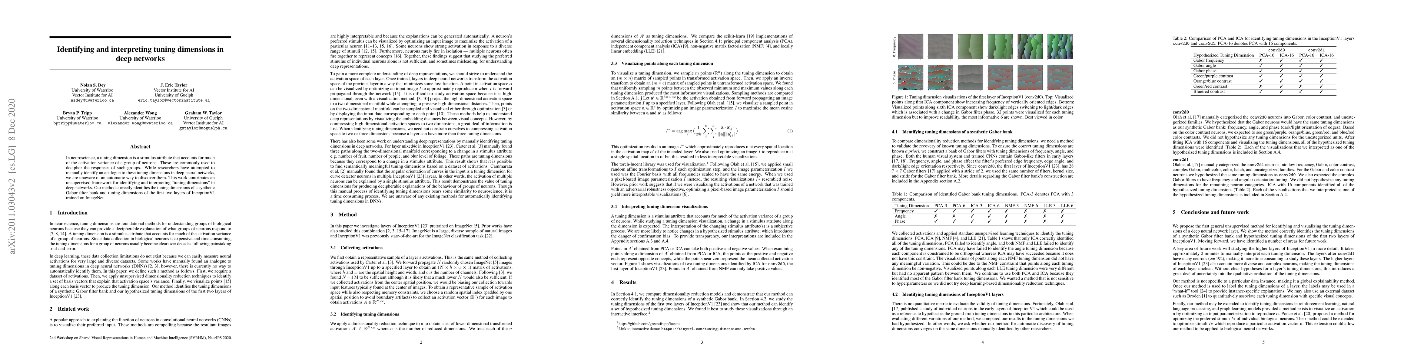 In neuroscience, a tuning dimension is a stimulus attribute that accounts for much of the activation variance of a group of neurons. These are commonly used to decipher the responses of such groups. While researchers have attempted to manually identify an analogue to these tuning dimensions in deep neural networks, we are unaware of an automatic way to discover them. This work contributes an unsupervised framework for identifying and interpreting "tuning dimensions" in deep networks. Our method correctly identifies the tuning dimensions of a synthetic Gabor filter bank and tuning dimensions of the first two layers of InceptionV1 trained on ImageNet.