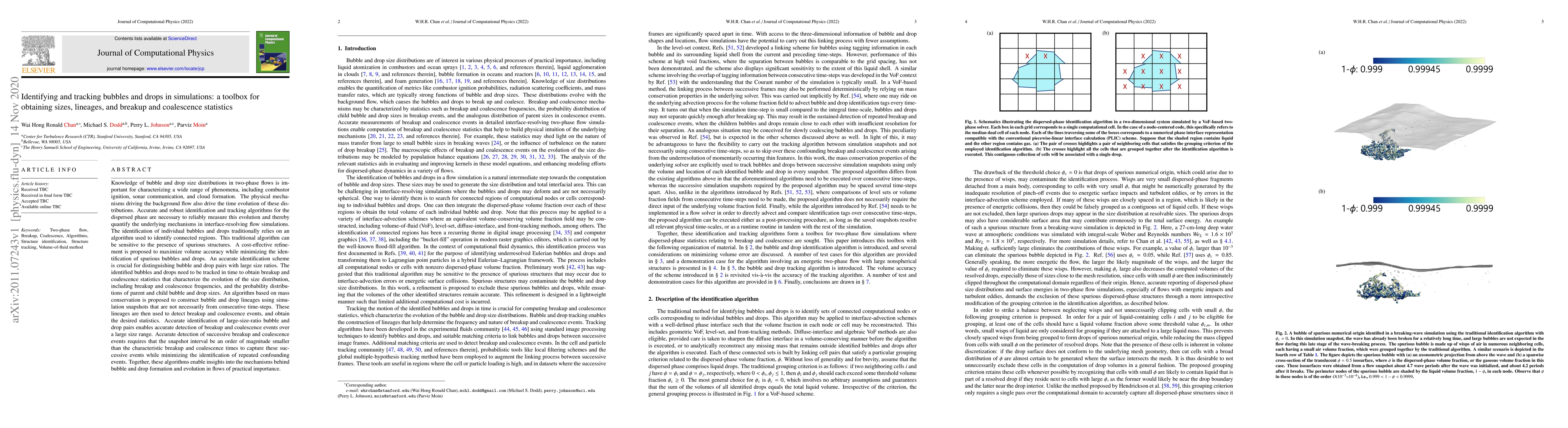 This paper proposes refined algorithms for accurately identifying and tracking bubbles and drops in two-phase flow simulations to obtain precise size distributions and breakup/coalescence statistics. The new methods enhance the detection of large-size-ratio pairs and lineages, providing insights into the underlying mechanisms of bubble and drop dynamics.