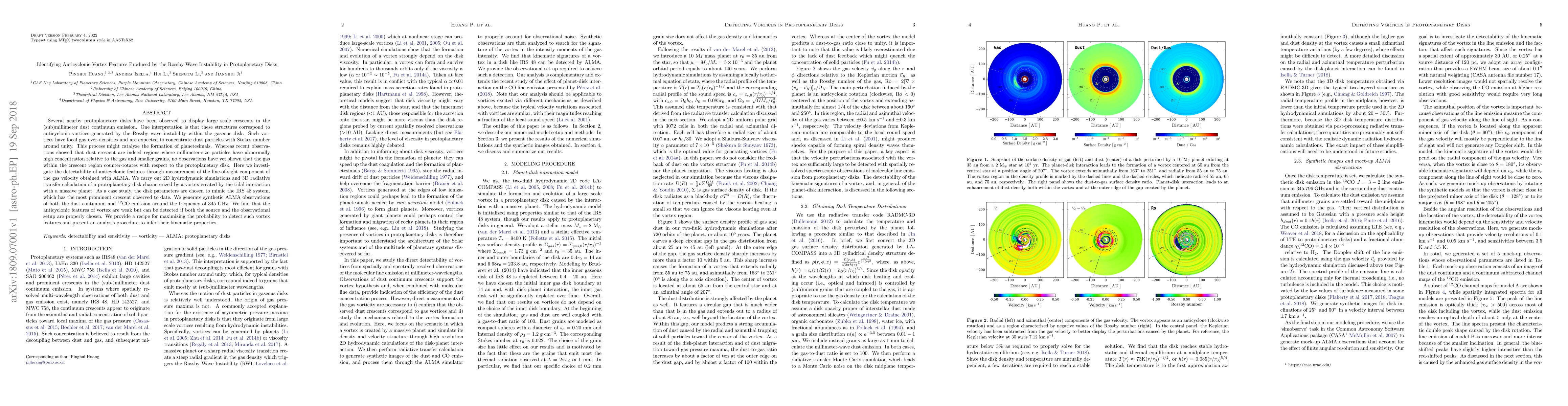 This paper investigates the detectability of anticyclonic vortices in protoplanetary disks generated by Rossby wave instability, using ALMA observations. Through simulations and synthetic observations, the authors find that while these features are weak, they can be detected with proper setup and analysis, offering a method to infer their kinematic properties.