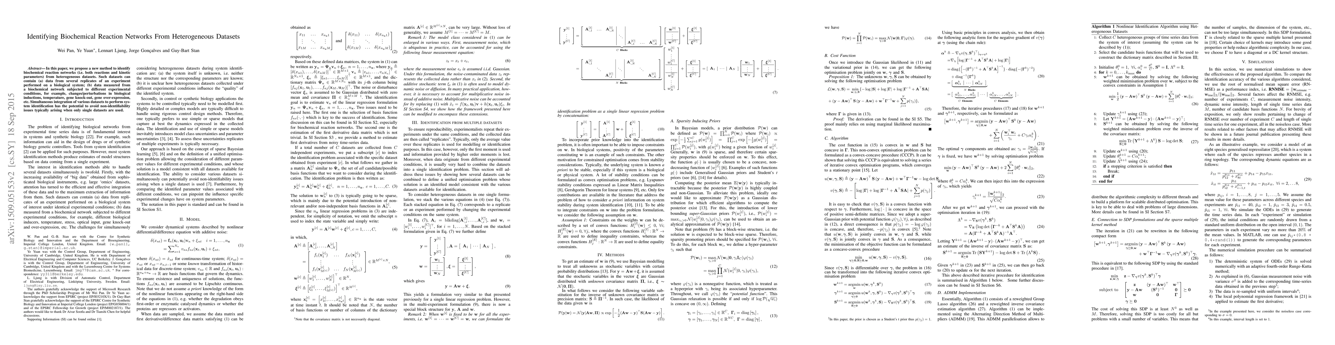 This paper introduces a novel method to identify biochemical reaction networks and their kinetic parameters from diverse datasets, including experimental replicates and data under various conditions. The approach aims to overcome non-identifiability issues by integrating multiple data sources.