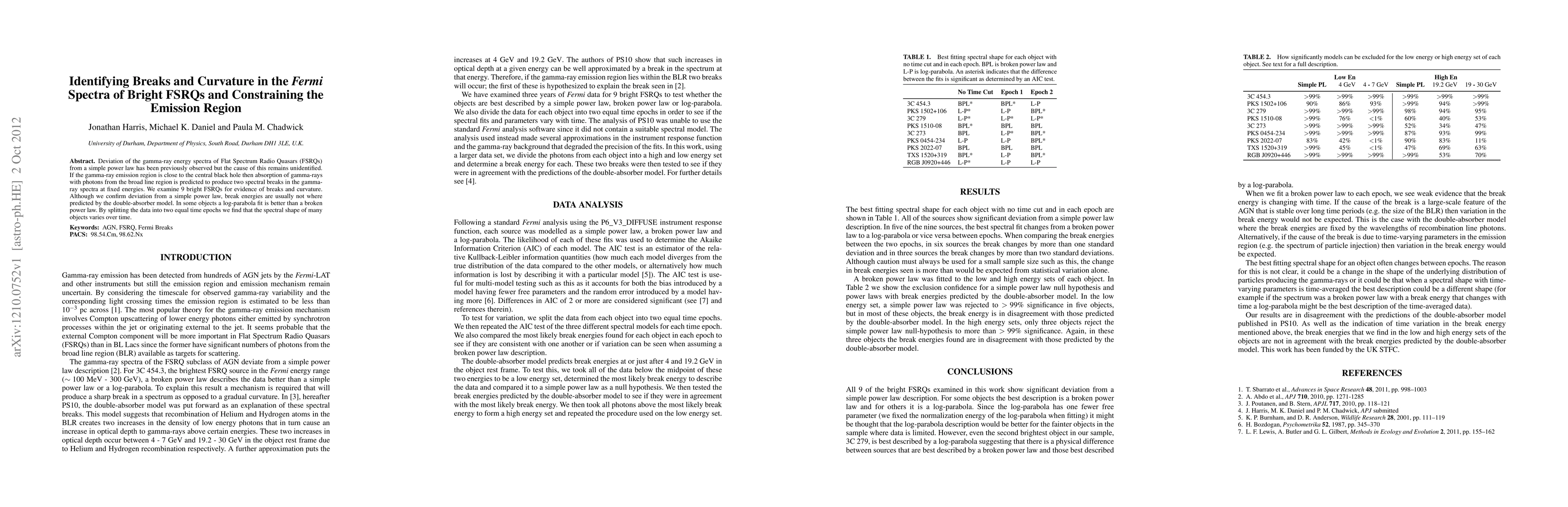 Deviation of the gamma-ray energy spectra of Flat Spectrum Radio Quasars (FSRQs) from a simple power law has been previously observed but the cause of this remains unidentified. If the gamma-ray emission region is close to the central black hole then absorption of gamma-rays with photons from the broad line region is predicted to produce two spectral breaks in the gamma-ray spectra at fixed energies. We examine 9 bright FSRQs for evidence of breaks and curvature. Although we confirm deviation from a simple power law, break energies are usually not where predicted by the double-absorber model. In some objects a log-parabola fit is better than a broken power law. By splitting the data into two equal time epochs we find that the spectral shape of many objects varies over time.