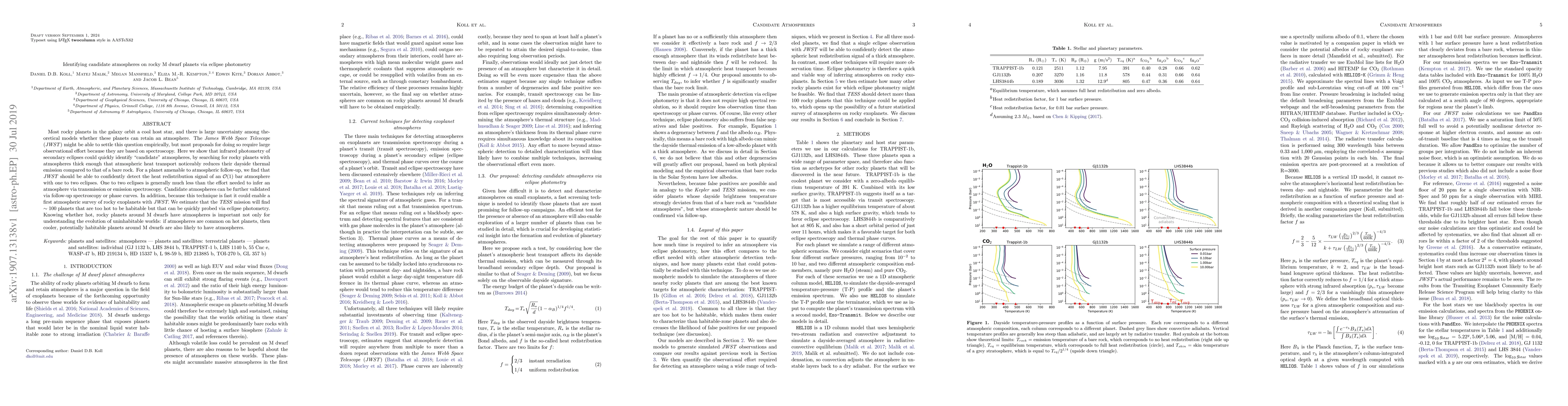 The paper presents a novel approach using eclipse photometry for identifying candidate atmospheres on rocky exoplanets, which is faster and requires less observational effort than traditional spectroscopy methods.