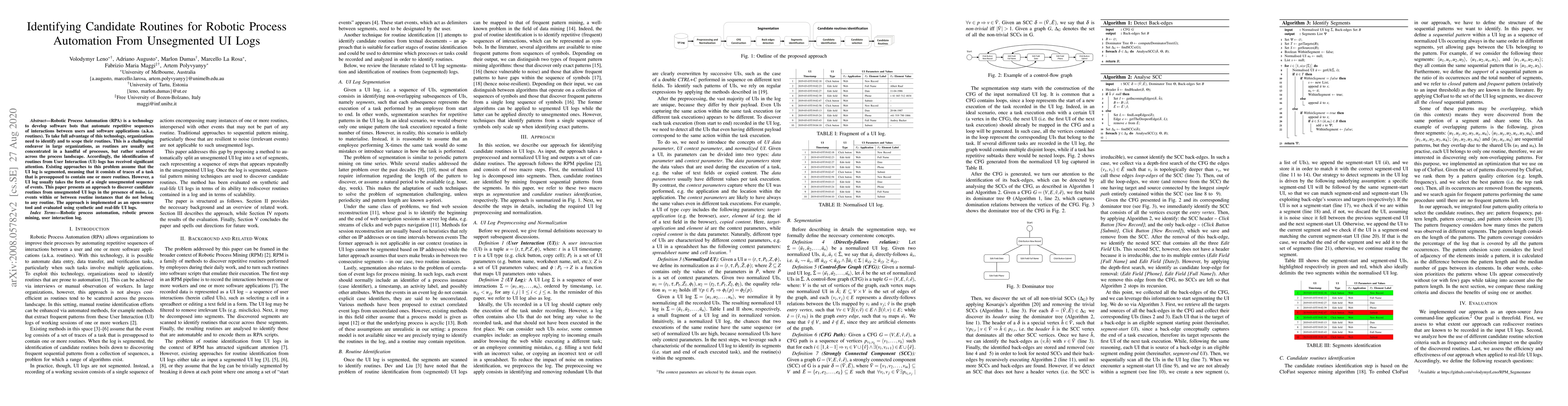This paper proposes a method to identify candidate routines for Robotic Process Automation from unsegmented User Interaction logs, addressing the challenge of noise within and between routine instances. The approach is implemented as an open-source tool and evaluated using both synthetic and real-life UI logs.