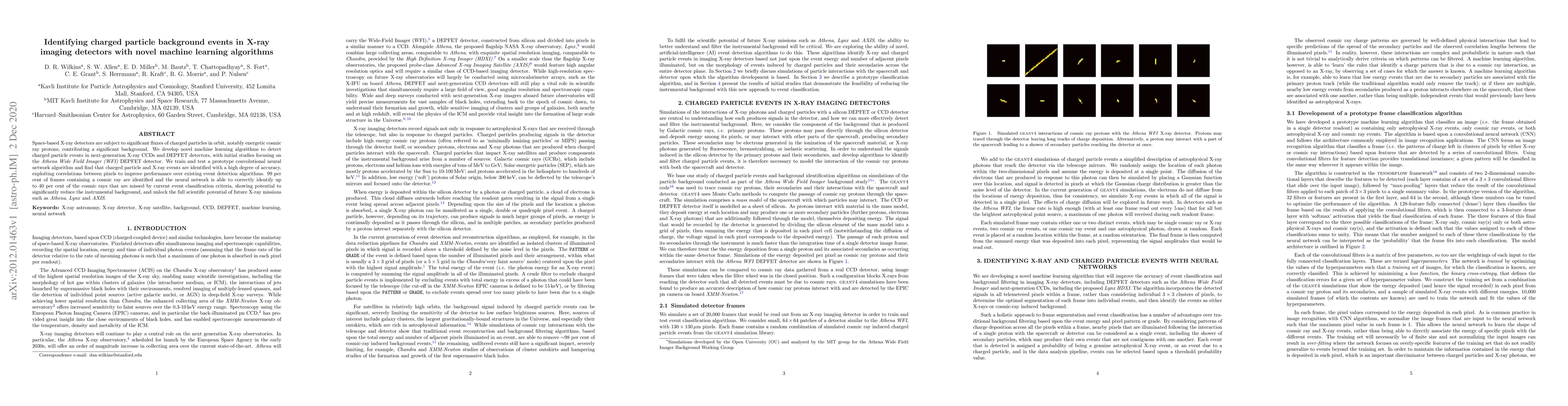 This paper develops novel machine learning algorithms, specifically a convolutional neural network, to identify charged particle background events in space-based X-ray detectors, significantly improving detection accuracy and reducing instrumental background noise. The approach successfully identifies 99% of cosmic ray events and corrects for 40% of missed events by current methods.