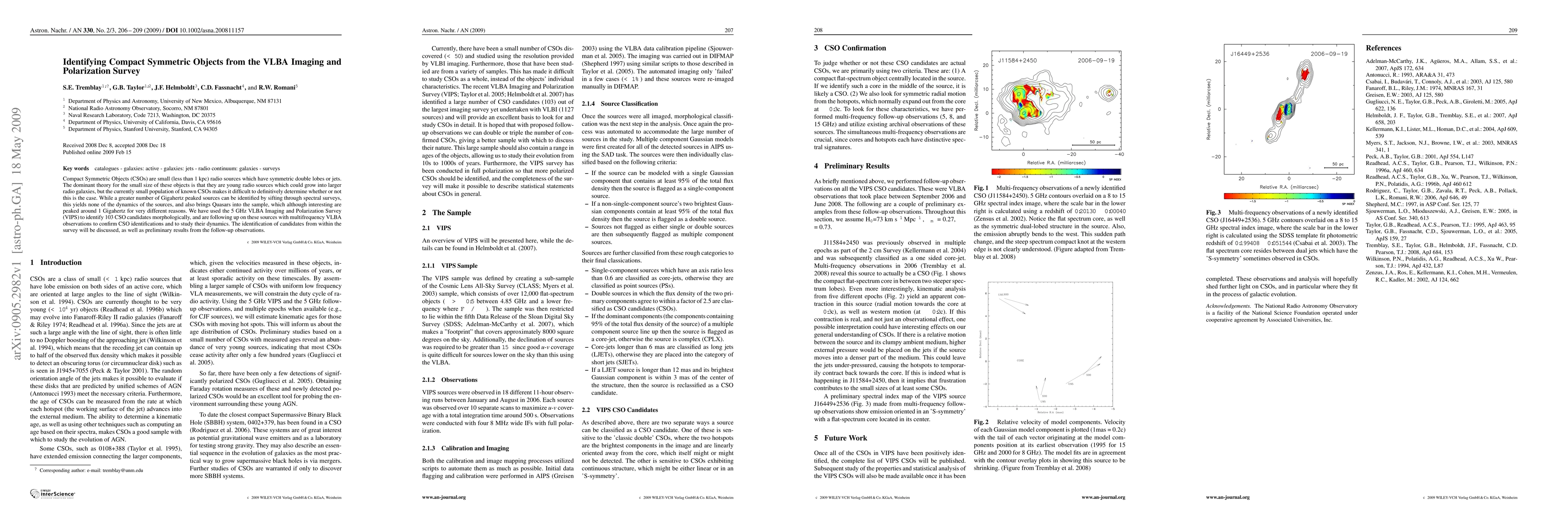 Compact Symmetric Objects (CSOs) are small (less than 1 kpc) radio sources which have symmetric double lobes or jets. The dominant theory for the small size of these objects is that they are young radio sources which could grow into larger radio galaxies, but the currently small population of known CSOs makes it difficult to definitively determine whether or not this is the case. While a greater number of Gigahertz peaked sources can be identified by sifting through spectral surveys, this yields none of the dynamics of the sources, and also brings Quasars into the sample, which although interesting are peaked around 1 Gigahertz for very different reasons. We have used the 5 GHz VLBA Imaging and Polarization Survey (VIPS) to identify 103 CSO candidates morphologically, and are following up on these sources with multifrequency VLBA observations to confirm CSO identifications and to study their dynamics. The identification of candidates from within the survey will be discussed, as well as preliminary results from the follow-up observations.