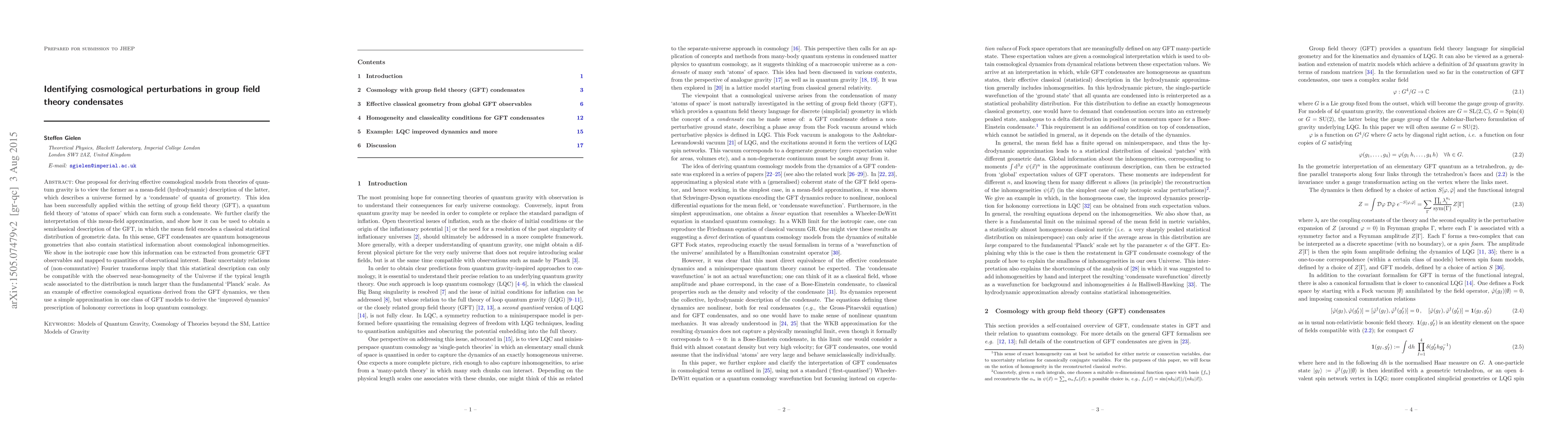 One proposal for deriving effective cosmological models from theories of quantum gravity is to view the former as a mean-field (hydrodynamic) description of the latter, which describes a universe formed by a 'condensate' of quanta of geometry. This idea has been successfully applied within the setting of group field theory (GFT), a quantum field theory of 'atoms of space' which can form such a condensate. We further clarify the interpretation of this mean-field approximation, and show how it can be used to obtain a semiclassical description of the GFT, in which the mean field encodes a classical statistical distribution of geometric data. In this sense, GFT condensates are quantum homogeneous geometries that also contain statistical information about cosmological inhomogeneities. We show in the isotropic case how this information can be extracted from geometric GFT observables and mapped to quantities of observational interest. Basic uncertainty relations of (non-commutative) Fourier transforms imply that this statistical description can only be compatible with the observed near-homogeneity of the Universe if the typical length scale associated to the distribution is much larger than the fundamental 'Planck' scale. As an example of effective cosmological equations derived from the GFT dynamics, we then use a simple approximation in one class of GFT models to derive the 'improved dynamics' prescription of holonomy corrections in loop quantum cosmology.