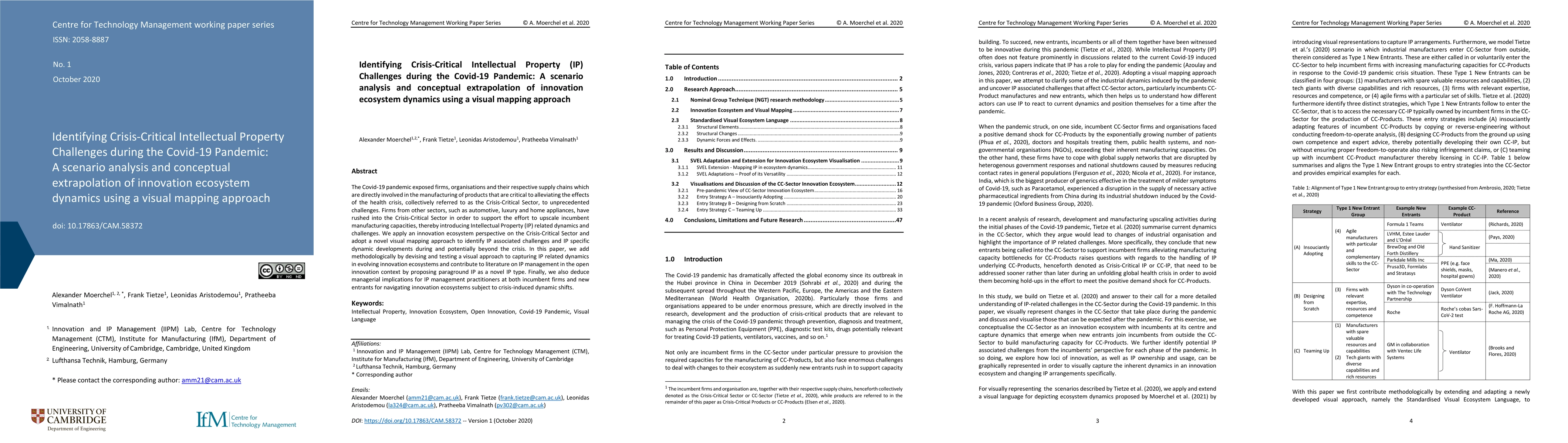 The Covid-19 pandemic exposed firms, organisations and their respective supply chains which are directly involved in the manufacturing of products that are critical to alleviating the effects of the health crisis, collectively referred to as the Crisis-Critical Sector,to unprecedented challenges. Firms from other sectors, such as automotive, luxury and home appliances, have rushed into the Crisis-Critical Sector in order to support the effort to upscale incumbent manufacturing capacities, thereby introducing Intellectual Property (IP)related dynamics and challenges. We apply an innovation ecosystem perspective on the Crisis-Critical Sector and adopt a novel visual mapping approach to identify IP associated challenges and IP specific dynamic developments during and potentially beyond the crisis.In this paper, we add methodologically by devising and testing a visual approach to capturing IP related dynamics in evolving innovation ecosystems and contribute to literature on IP management in the open innovation context by proposing paraground IP as a novel IP type.Finally, we also deduce managerial implications for IP management practitioners at both incumbent firms and new entrants for navigating innovation ecosystems subject to crisis-induced dynamic shifts.