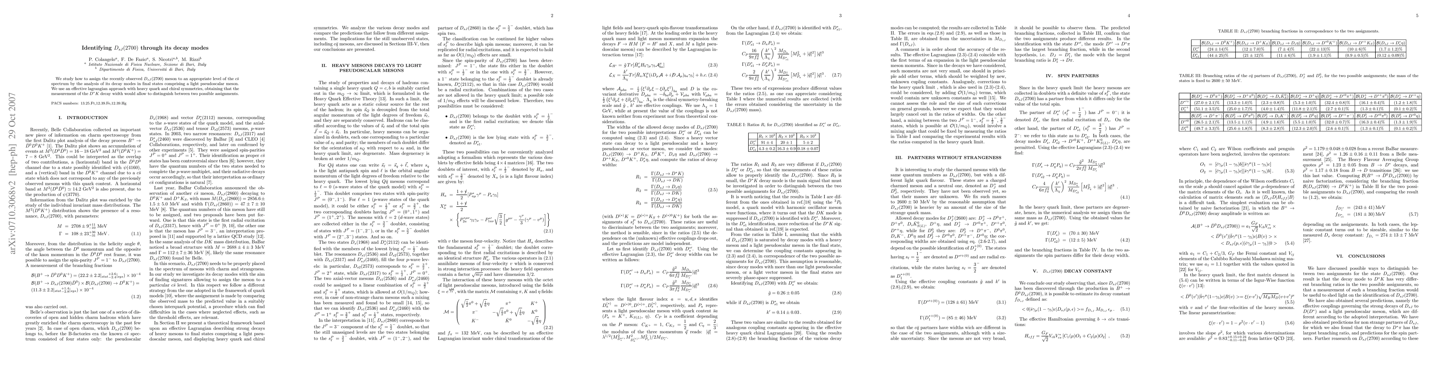 We study how to assign the recently observed $D_{sJ}(2700)$ meson to an appropriate level of the $c \bar s$ spectrum by the analysis of its decay modes in final states comprising a light pseudoscalar meson. We use an effective lagrangian approach with heavy quark and chiral symmetries, obtaining that the measurement of the $D^* K$ decay width would allow to distinguish between two possible assignments.
