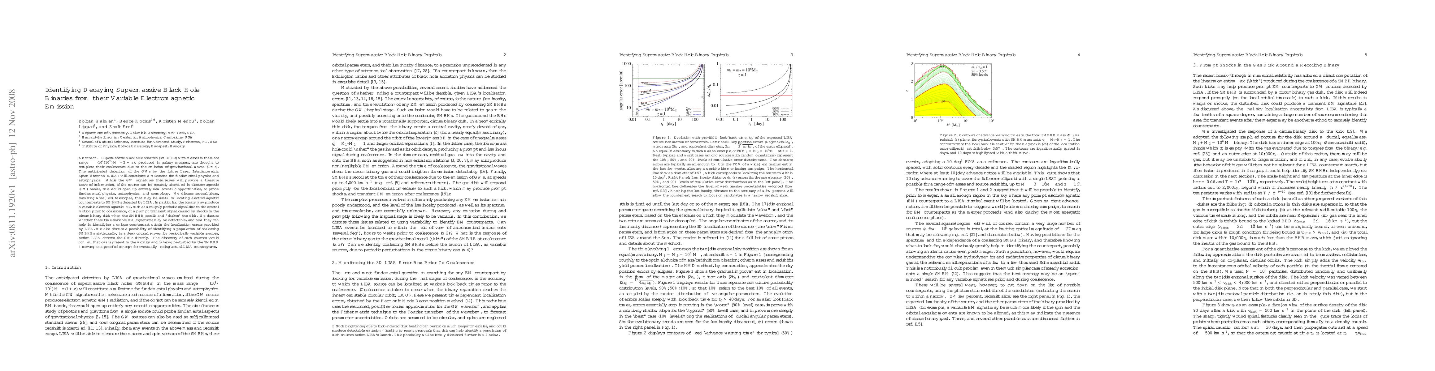 This paper explores methods to identify decaying supermassive black hole binaries (SMBHBs) through their variable electromagnetic emissions, complementing gravitational wave detections. It discusses potential electromagnetic signatures, such as periodic signals from orbital motion and transient signals from disk shocks, and proposes using wide-field telescopes to locate these counterparts, enhancing our understanding of fundamental physics and astrophysics.
